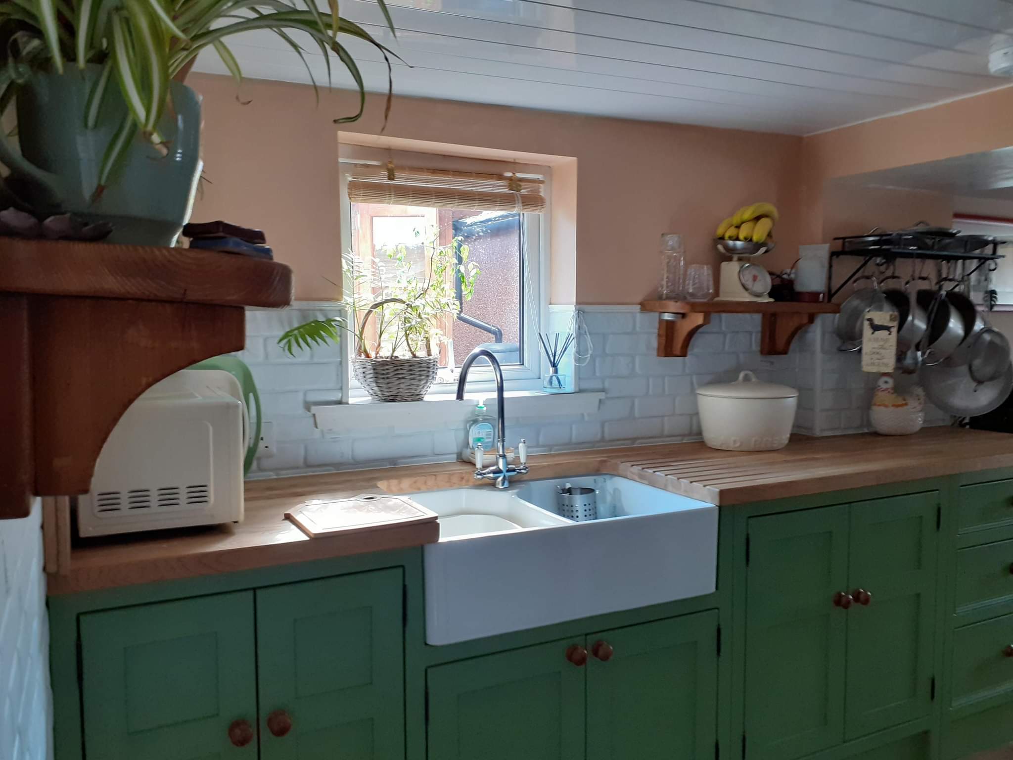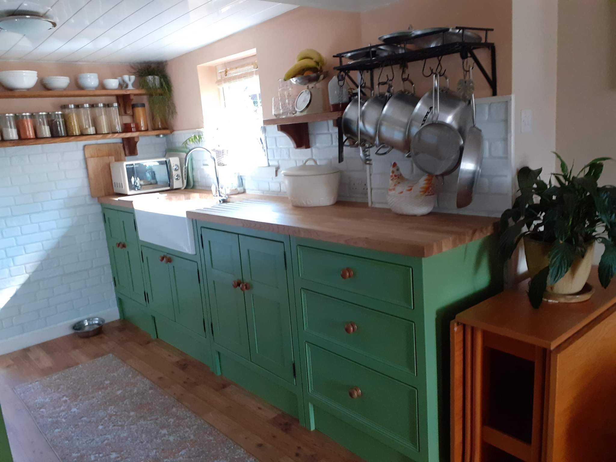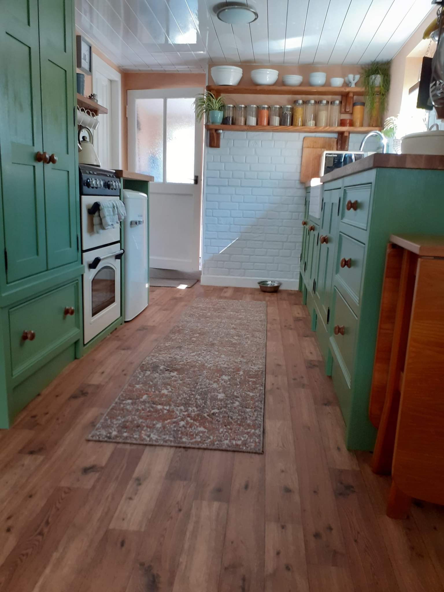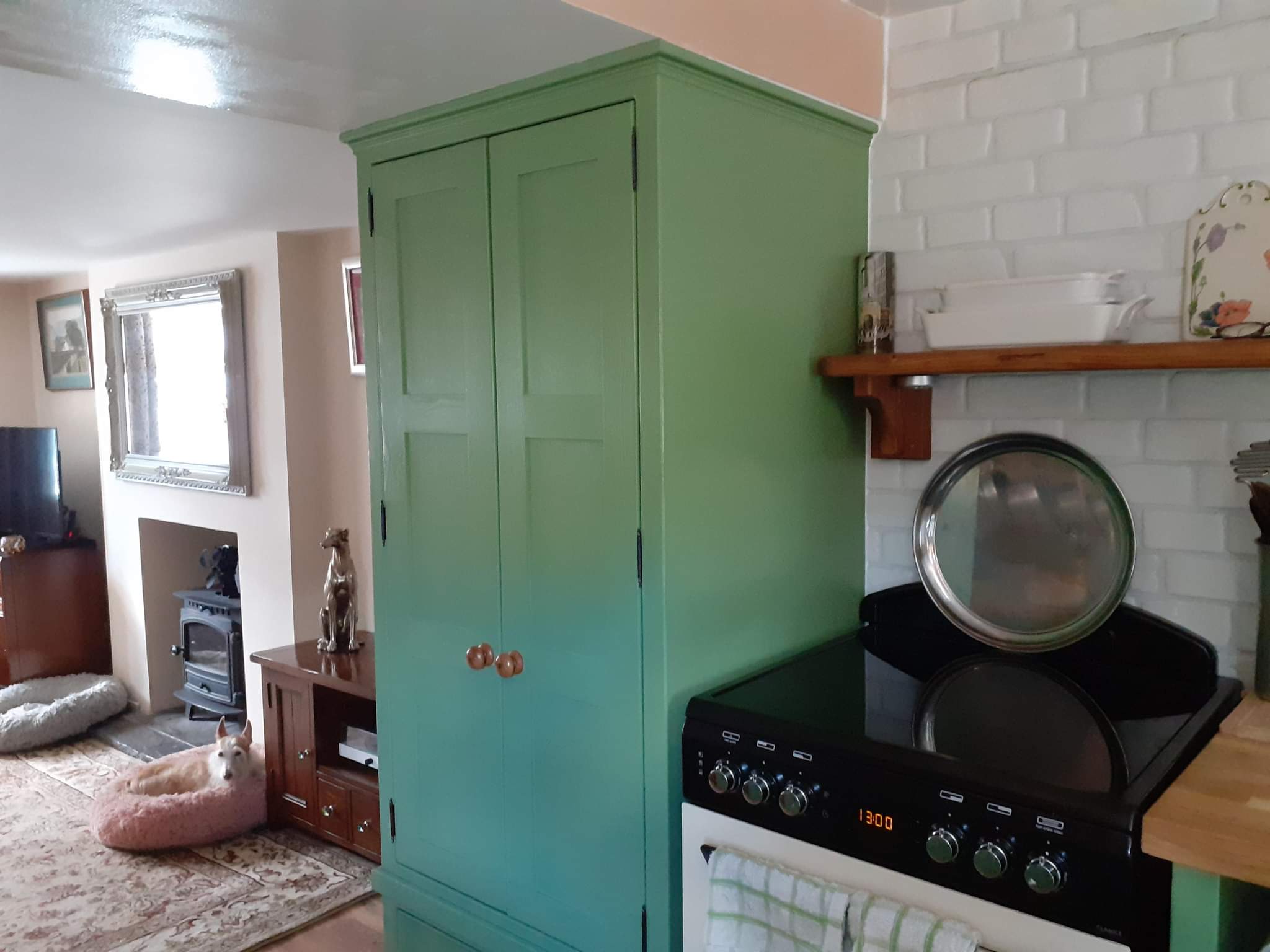 Freestanding kitchen in Aberdeen, painted in F&B’s ‘Yeabridge green’