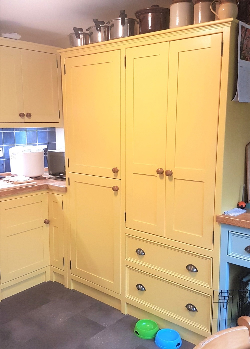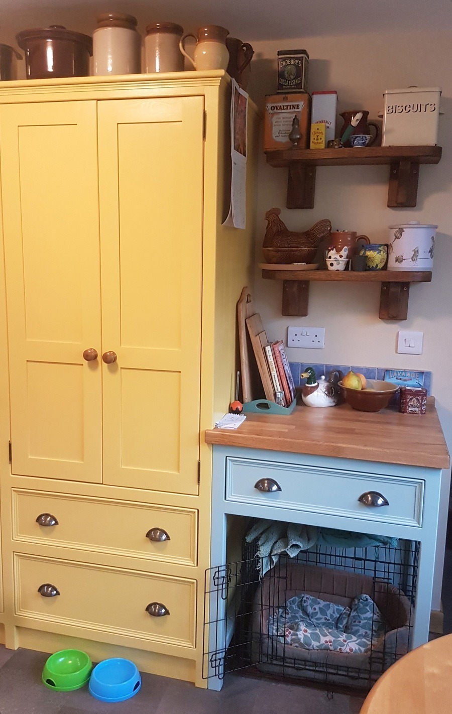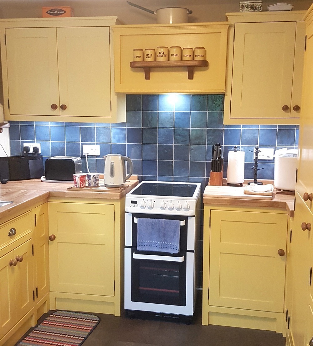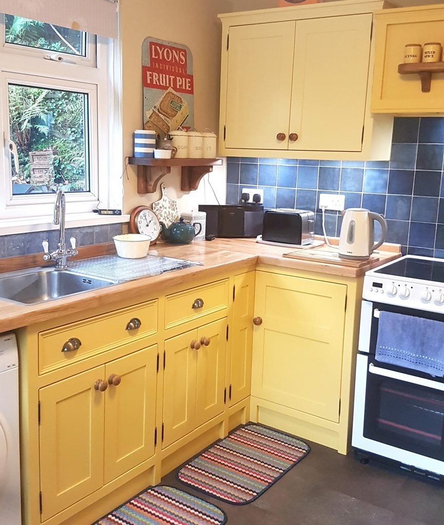 Jolly kitchen in Brynteg (painted in Babouche & day room yellow)