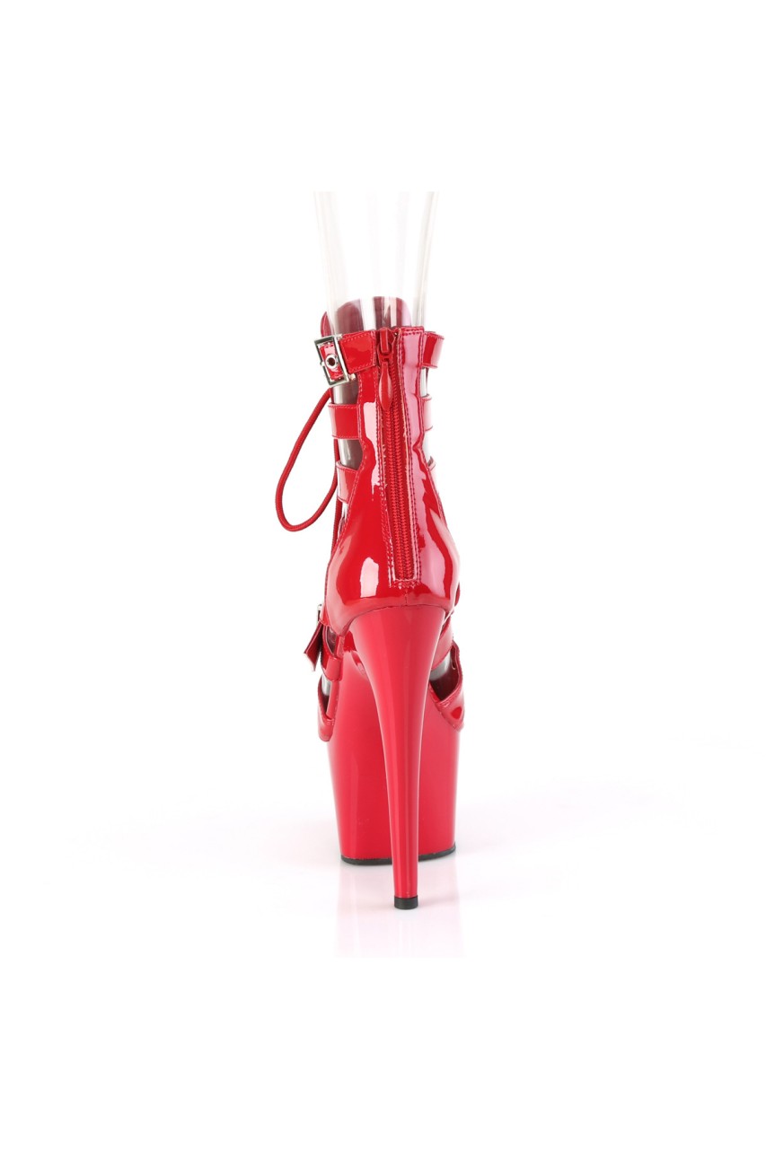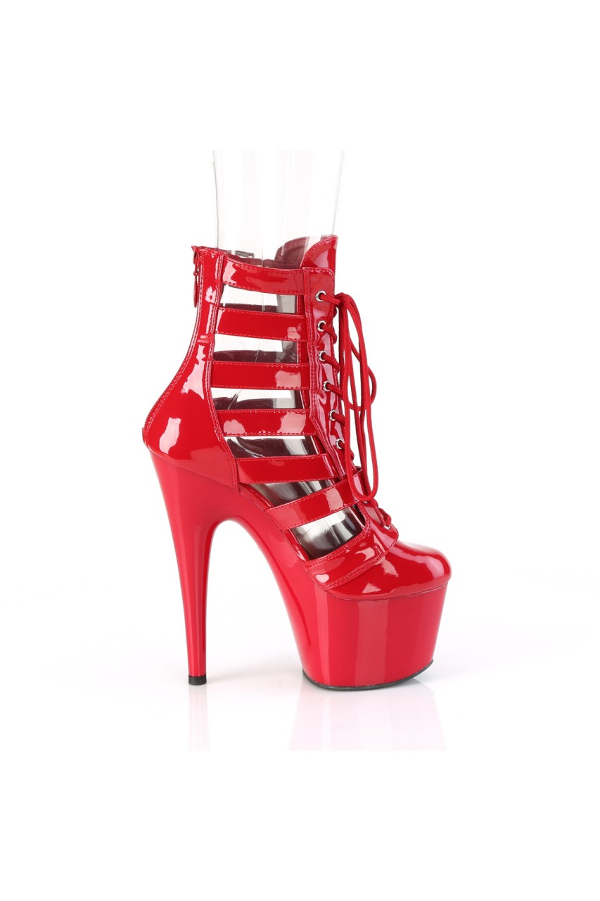 7″” (178mm) Heel, 2 3/4″” (70mm) Platform Strappy Dual Adjustable Buckled Strap Lace-Up Front Cage Bootie, Back Zip Closure