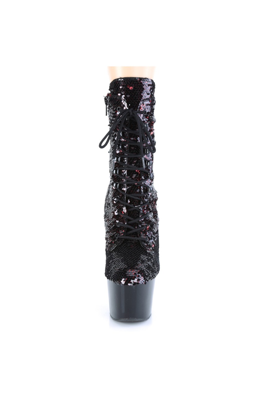 7″” (178mm) Heel, 2 3/4″” (70mm) Platform Lace-Up Front Ankle Boot w/ Reversible Sequins, Inner Side Zip Closure