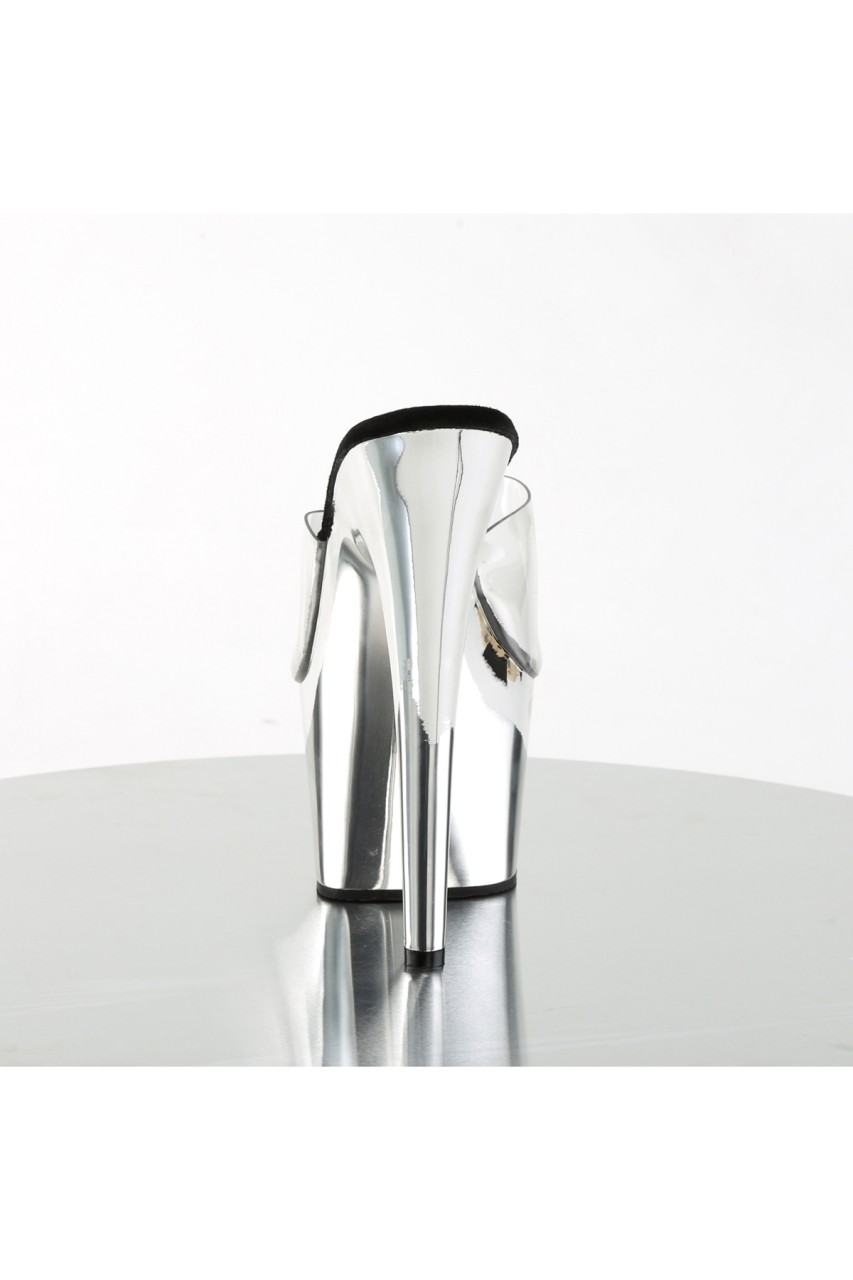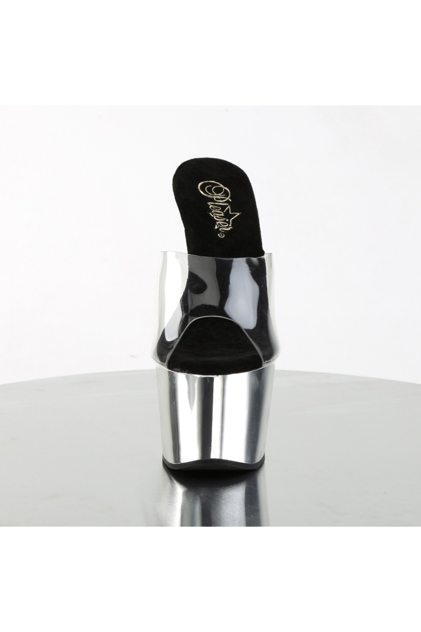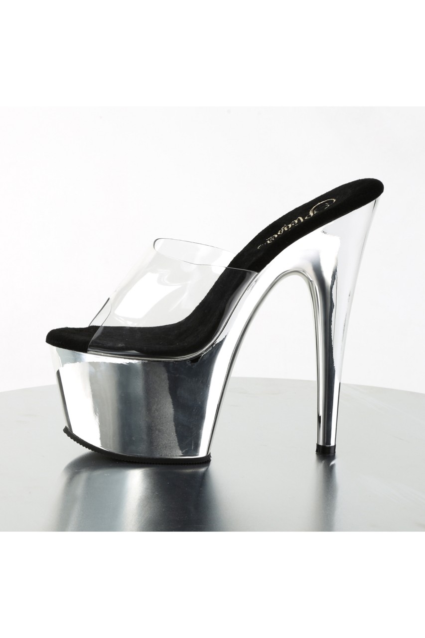 7″” (17.8cm) Stiletto Heel, 2 3/4″” (7cm) Platform Slide with Chrome Plated Bottom
