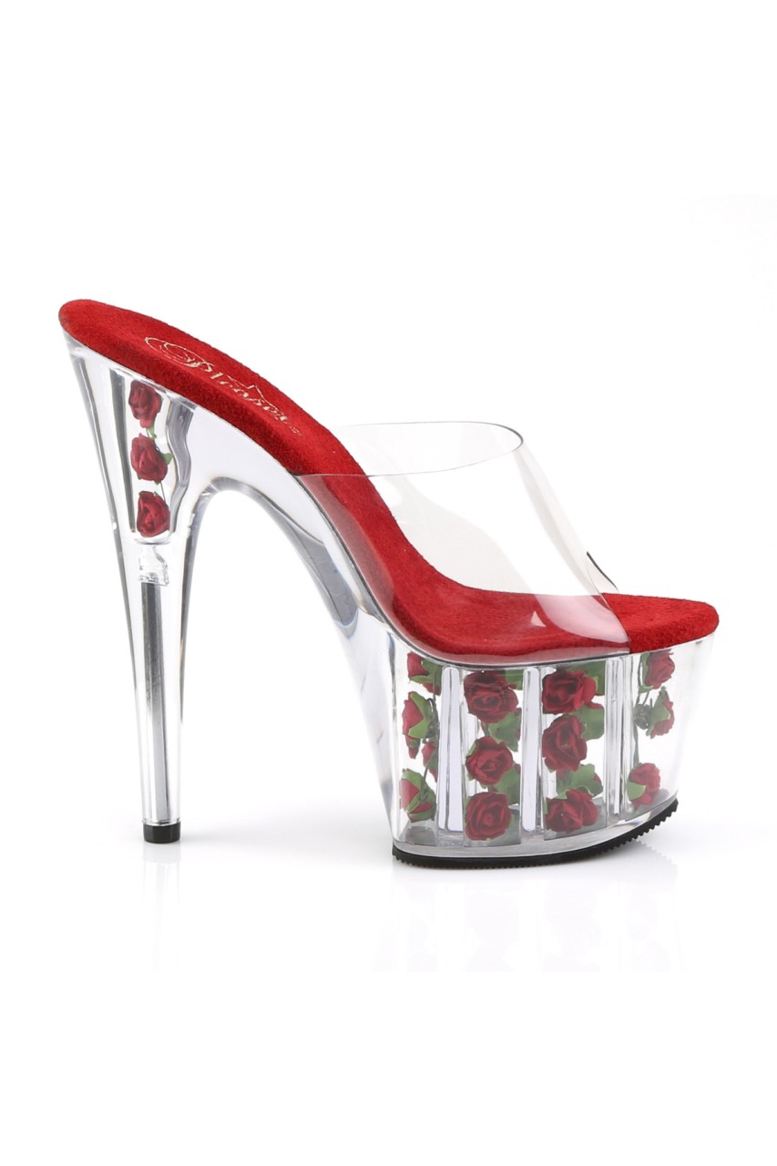 7″” (17.8cm) Stiletto Heel, 2 3/4″” (7cm) Platform Slide, Flower-filled Platform