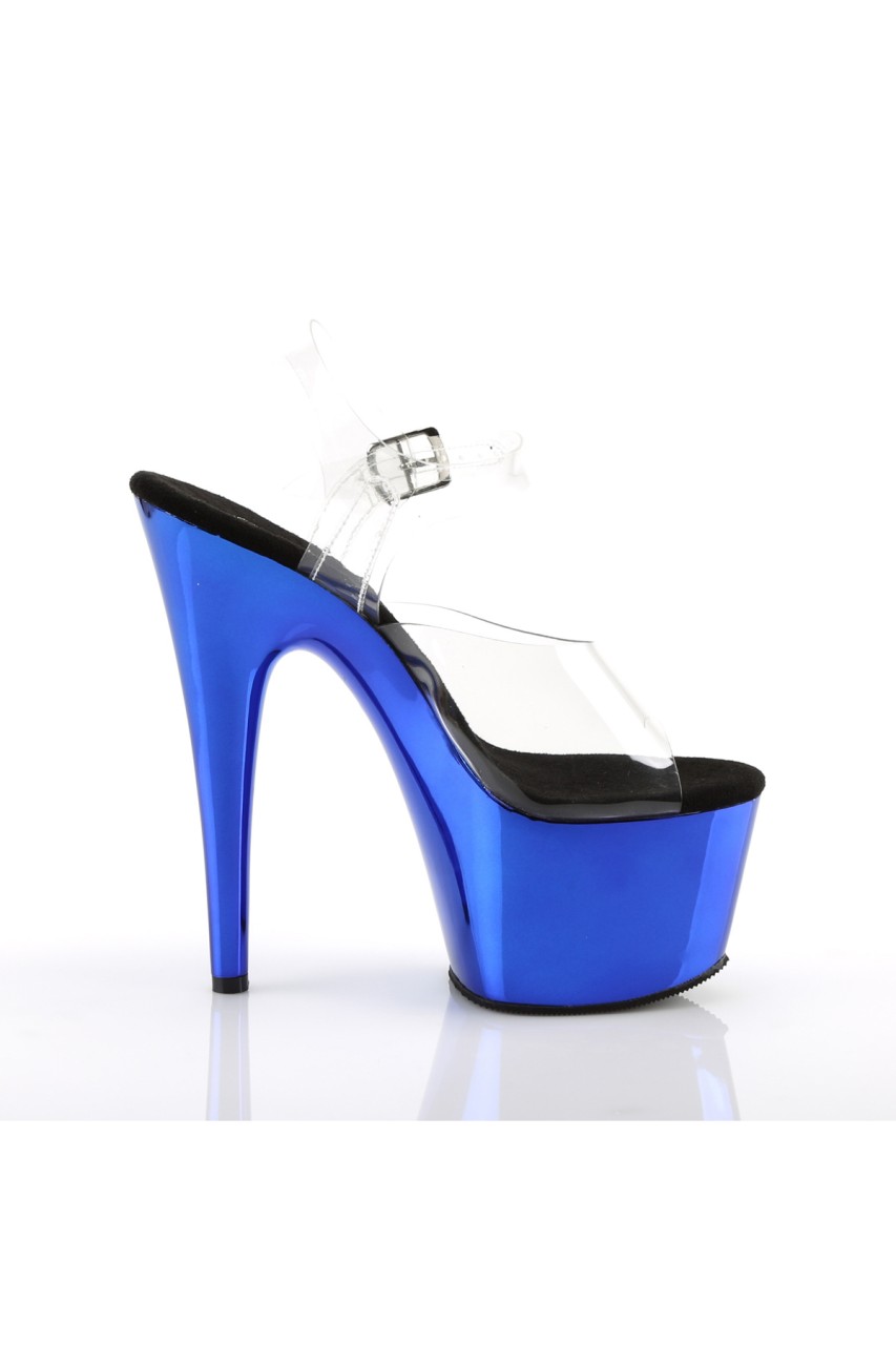 7″” (178mm) Heel, 2 3/4″” (70mm) Platform Ankle Strap Sandal w/ Chrome Plated Bottom