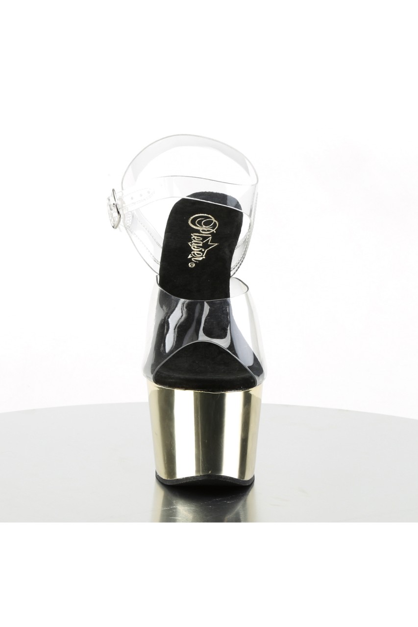7″” (17.8cm) Stiletto Heel, 2 3/4″” (7cm) Platform Ankle Strap Sandal with Chrome Plated Bottom