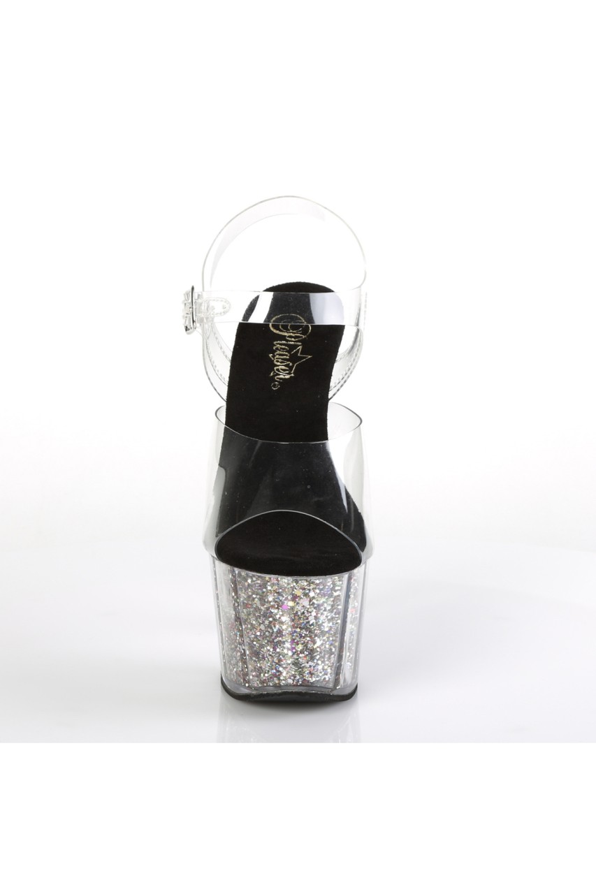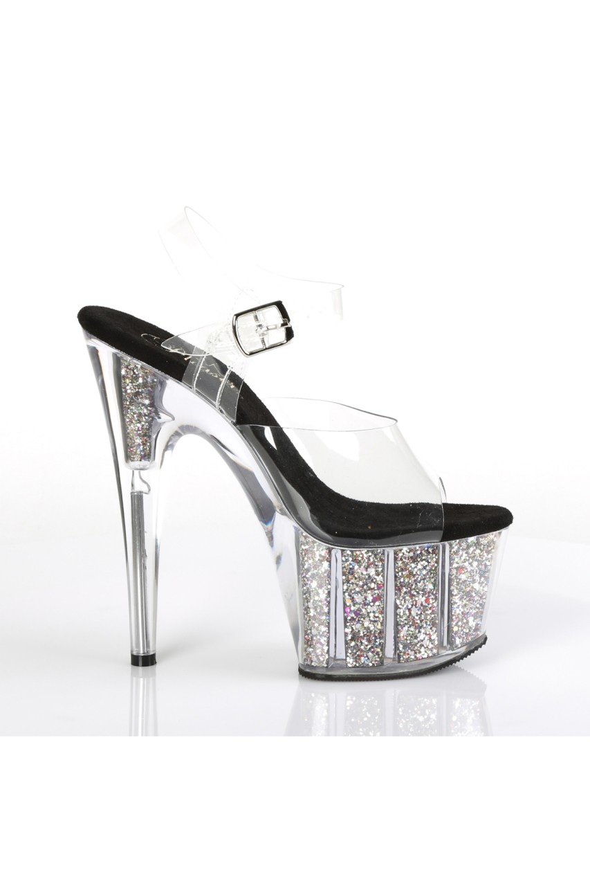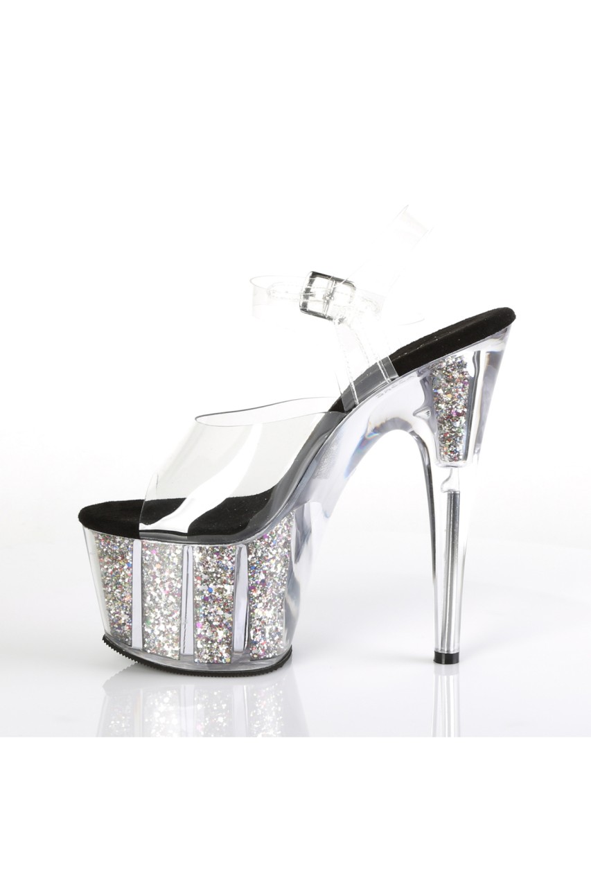 7″” (178mm) Heel, 2 3/4″” (70mm) Platform Ankle Strap Sandal w/ Confetti Glitter Inserts in the Platform Bottom