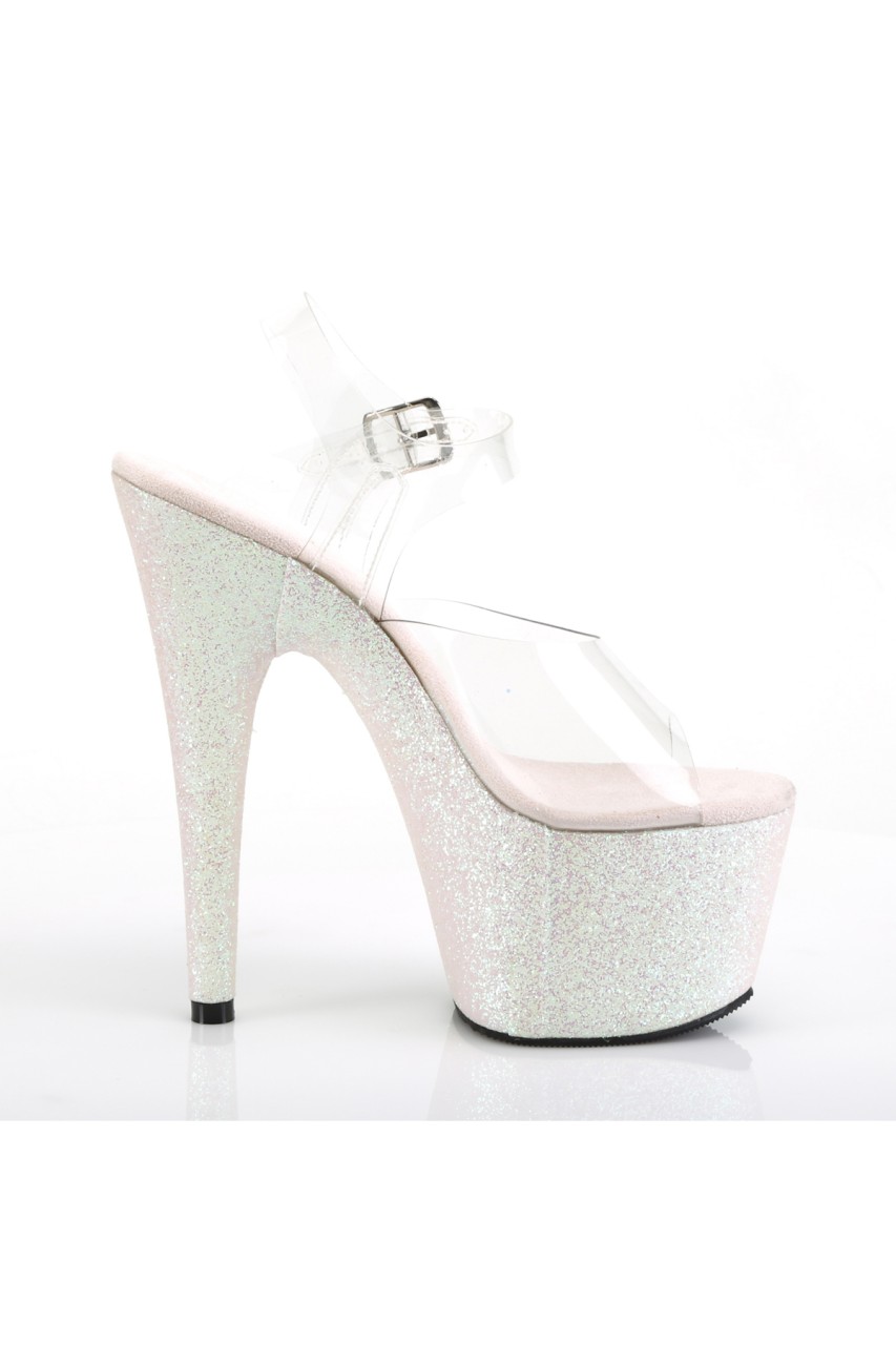 7″” (178mm) Heel, 2 3/4″” (70mm) Platform Ankle Strap Sandal Featuring Holographic Mini Glitter Wrapped Platform Bottom