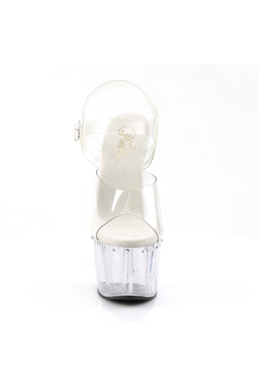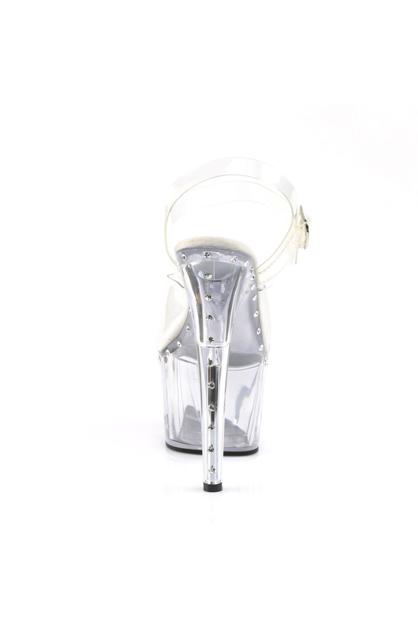 7″” (17.8cm) Stiletto Heel, 2 3/4″” (7cm) Platform Ankle Strap Sandal Featuring 1 Line Rhinestone on Platform & Heel