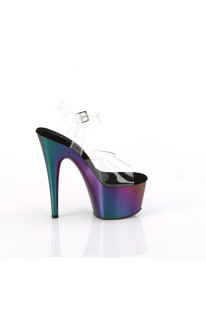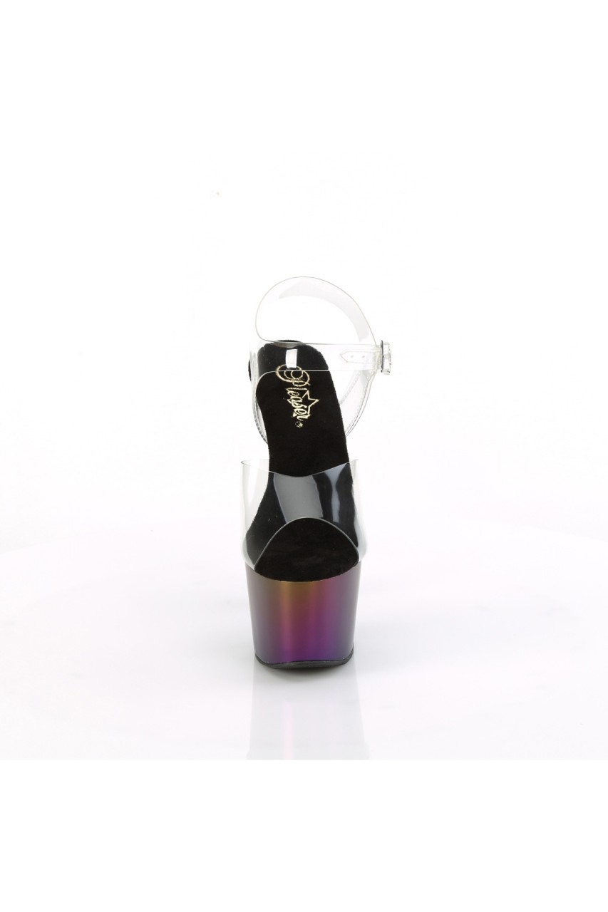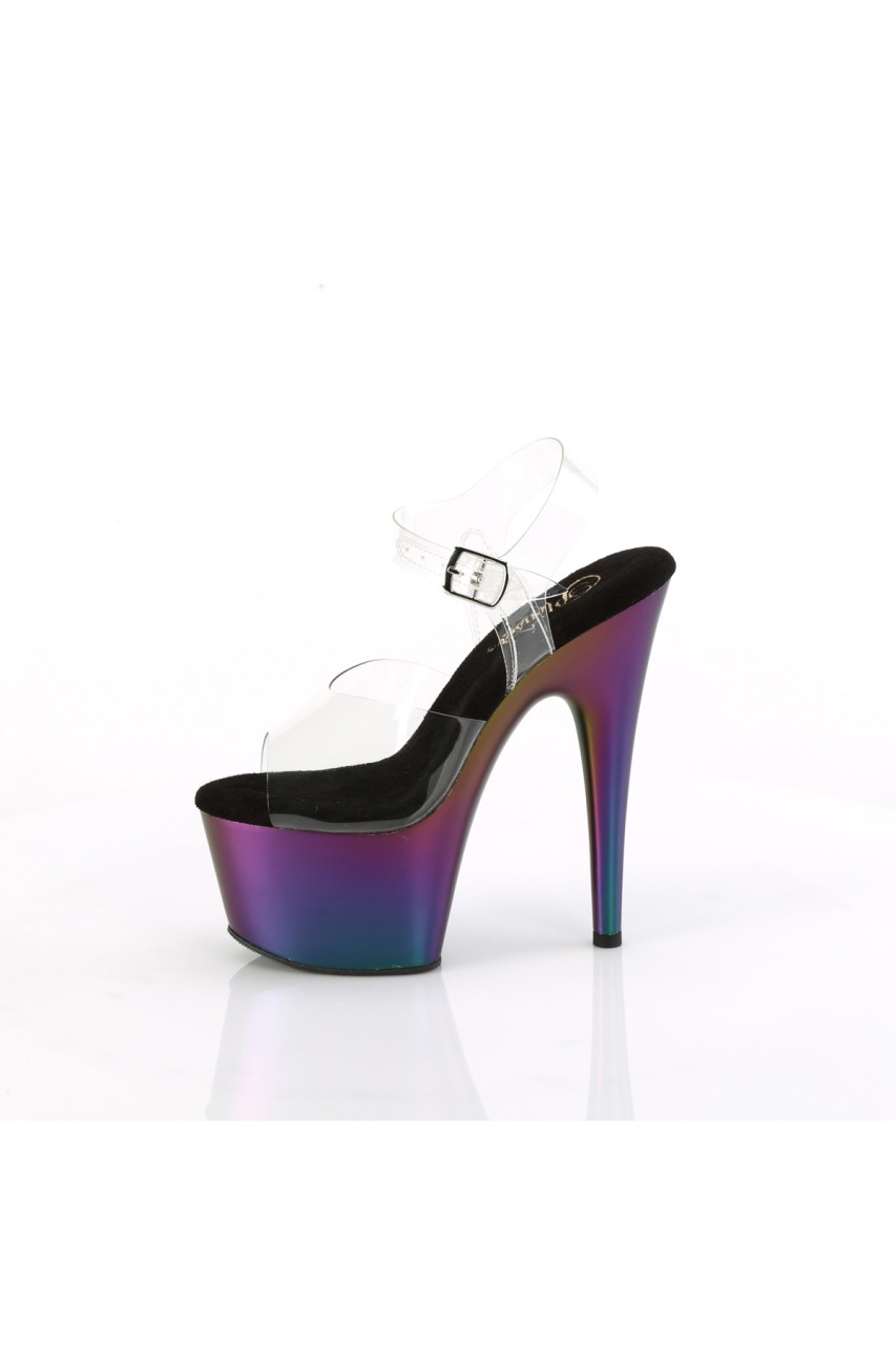 7″” (178mm) Heel, 2 3/4″” (70mm) Platform Ankle Strap Sandal Featuring Matte Chrome Platform Bottom
