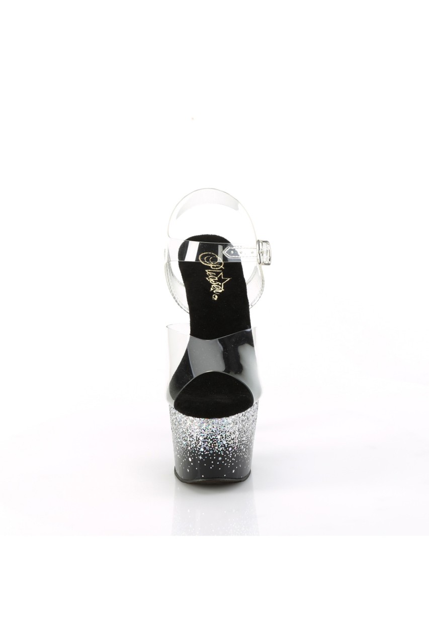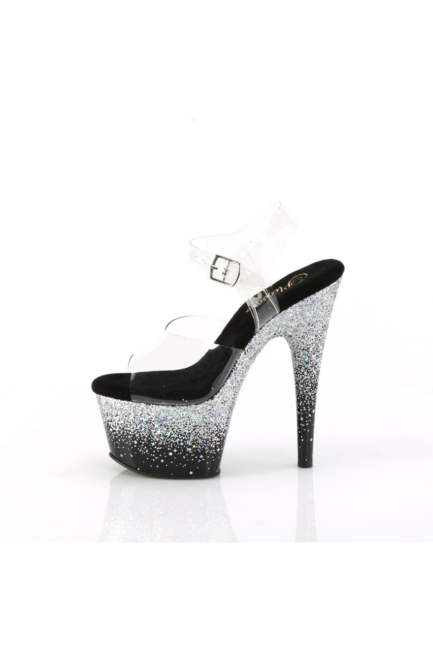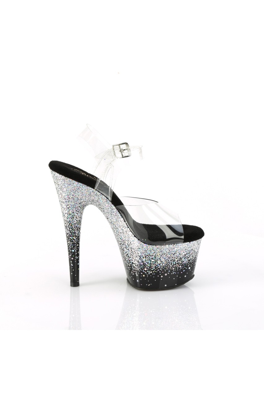 7″” (178mm) Heel, 2 3/4″” (70mm) Platform Ankle Strap Sandal w/Holographic Gradient Effect on the Platform Bottom
