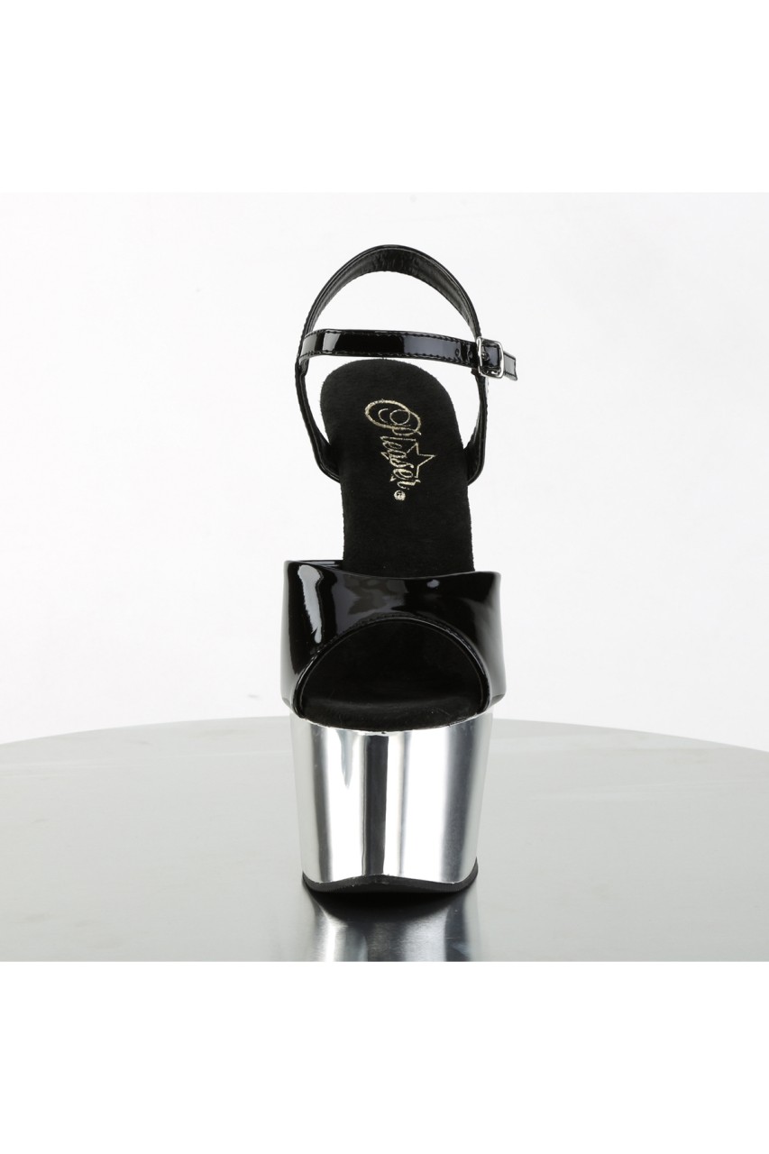 7″” (17.8cm) Stiletto Heel, 2 3/4″” (7cm) Platform Ankle Strap Sandal
