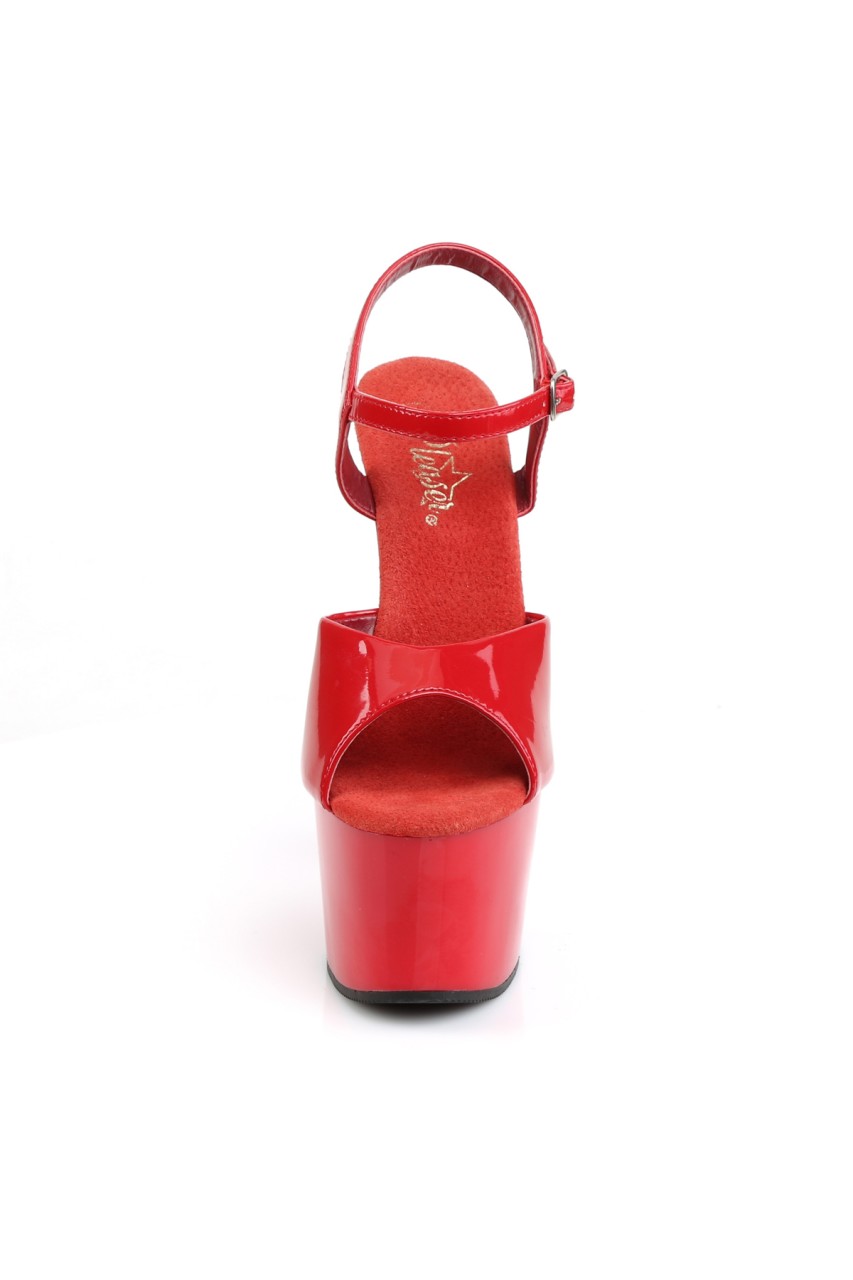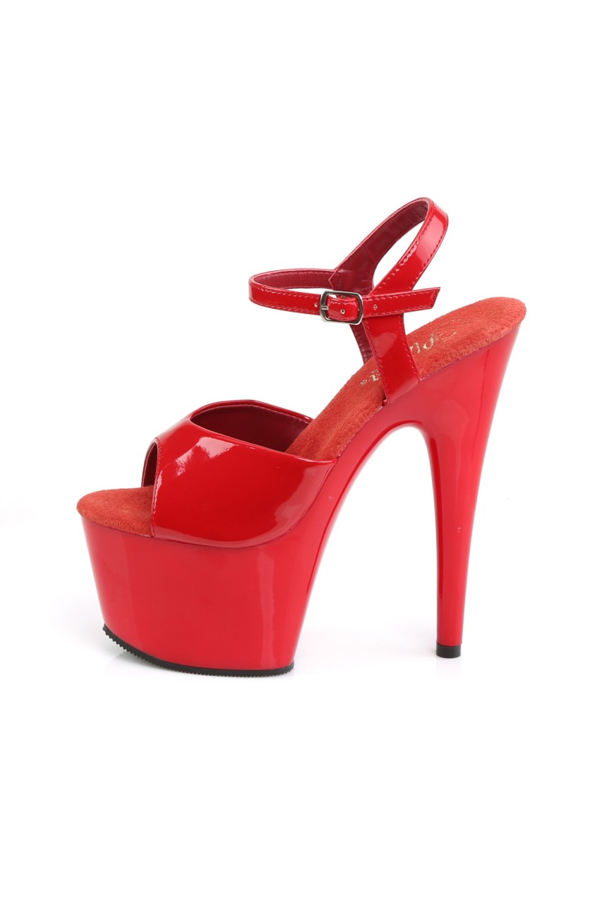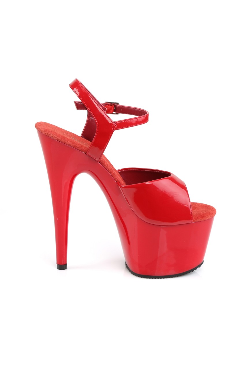 7″” (17.8cm) Stiletto Heel, 2 3/4″” (7cm) Platform Ankle Strap Sandal, Matte Red/Patent Red