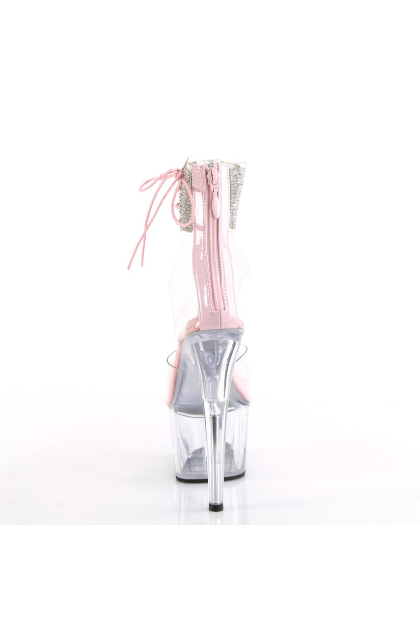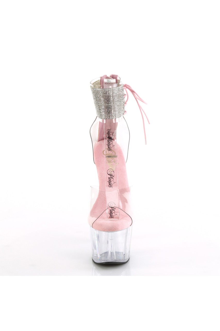 7″” (178mm) Heel, 2 3/4″” (70mm) Platform Close Back Rhinestone Embellished Ankle Cuff Sandal w/Side Lacing, Back Zip Closure