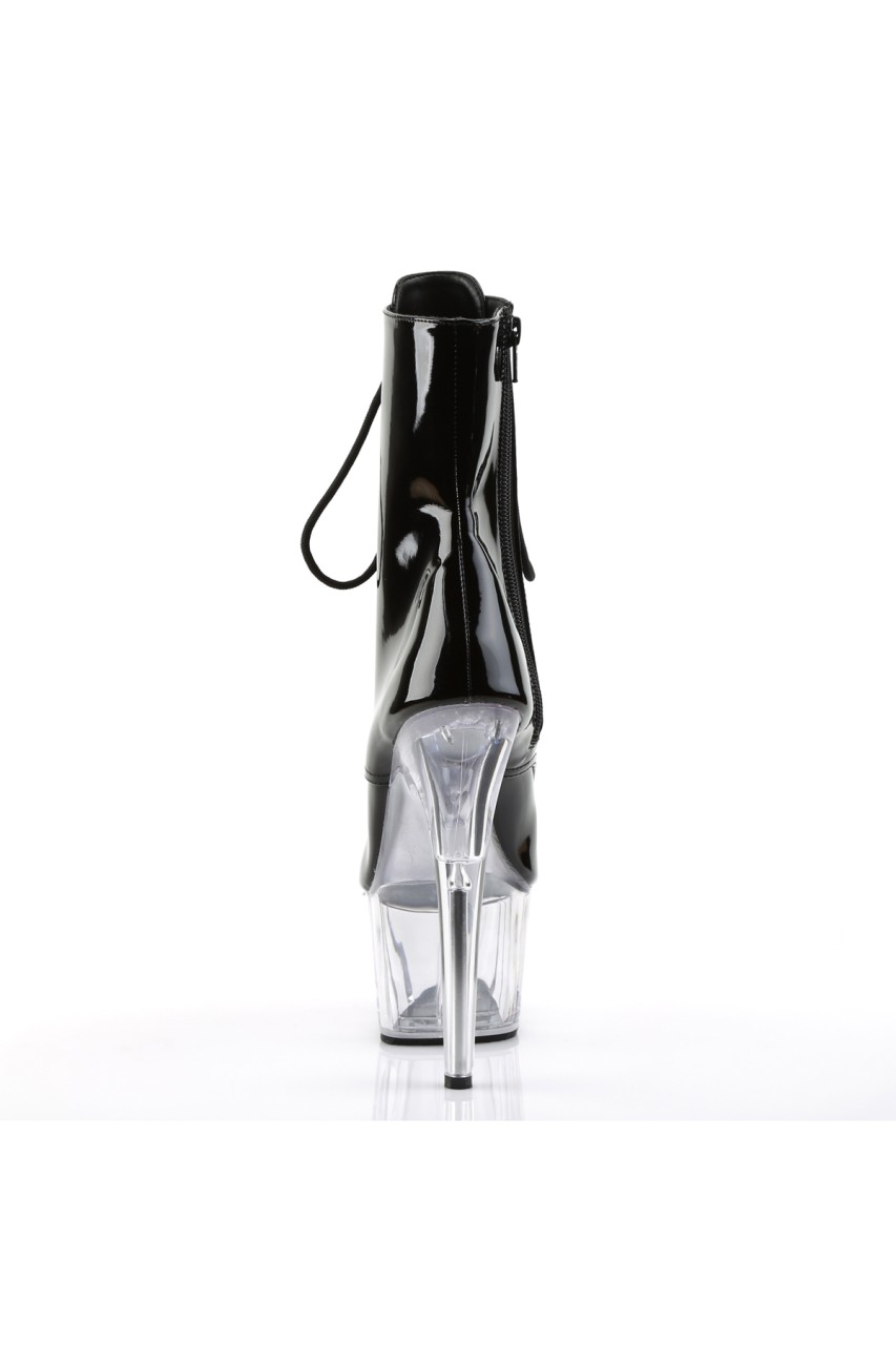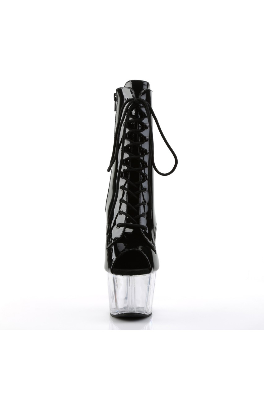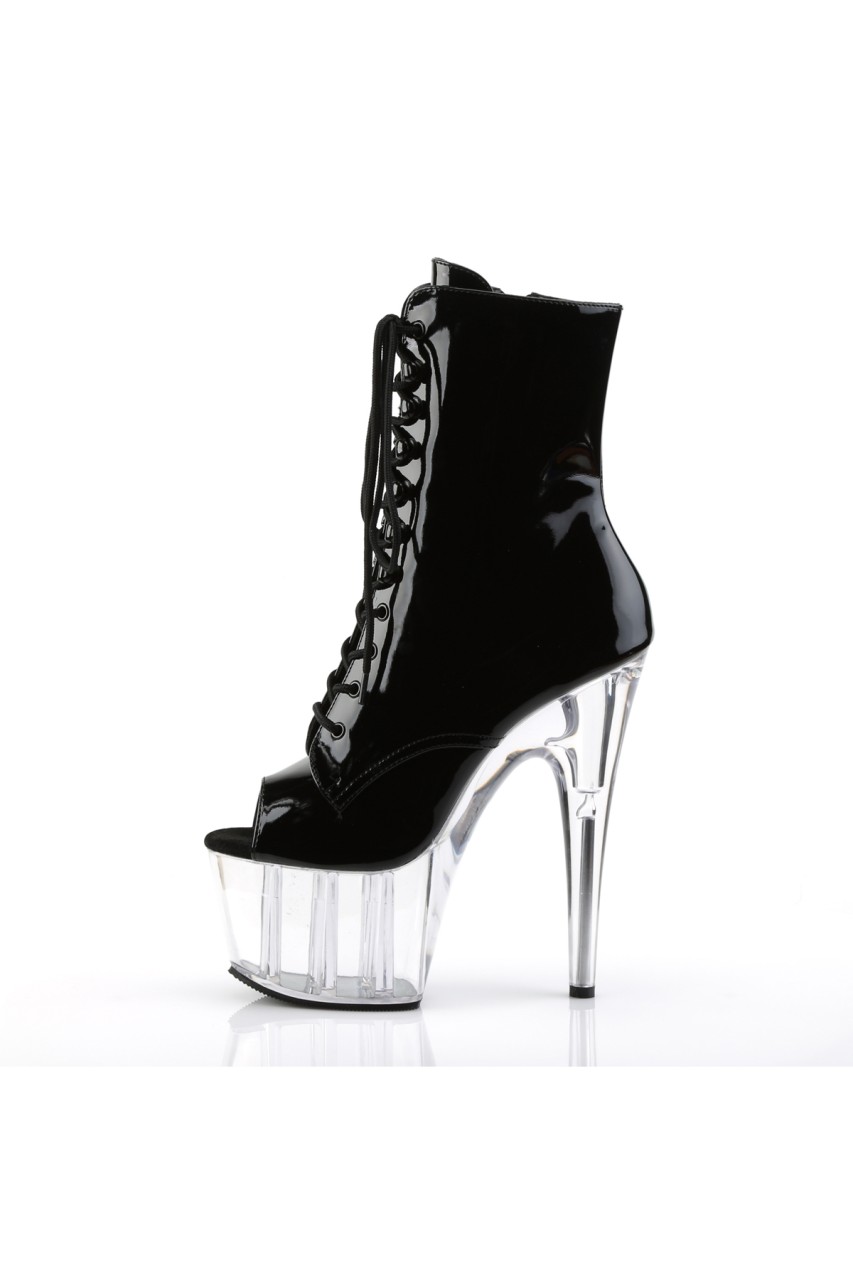 7″” (17.8cm) Stiletto Heel, 2 3/4″” (7cm) Platform Peep Toe Front Lace-Up Ankle Boot, Inner Side Zip Closure