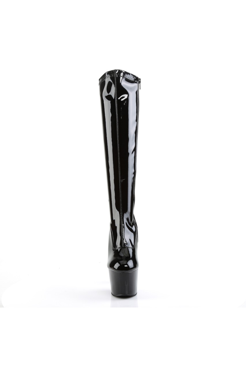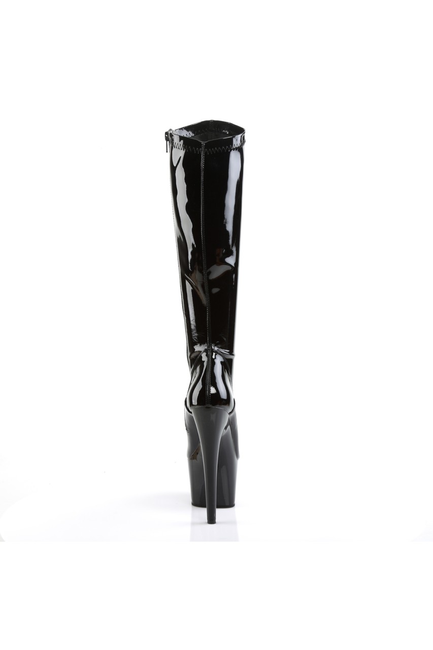 7″” (17.8cm) Stiletto Heel, 2 3/4″” (7cm) Platform Stretch Knee Boot, Side Zip Closure