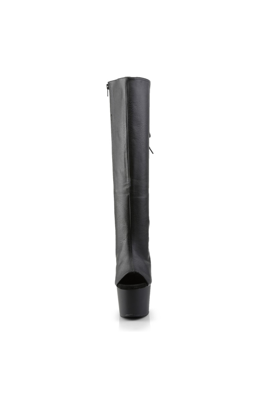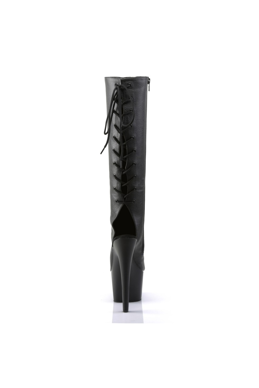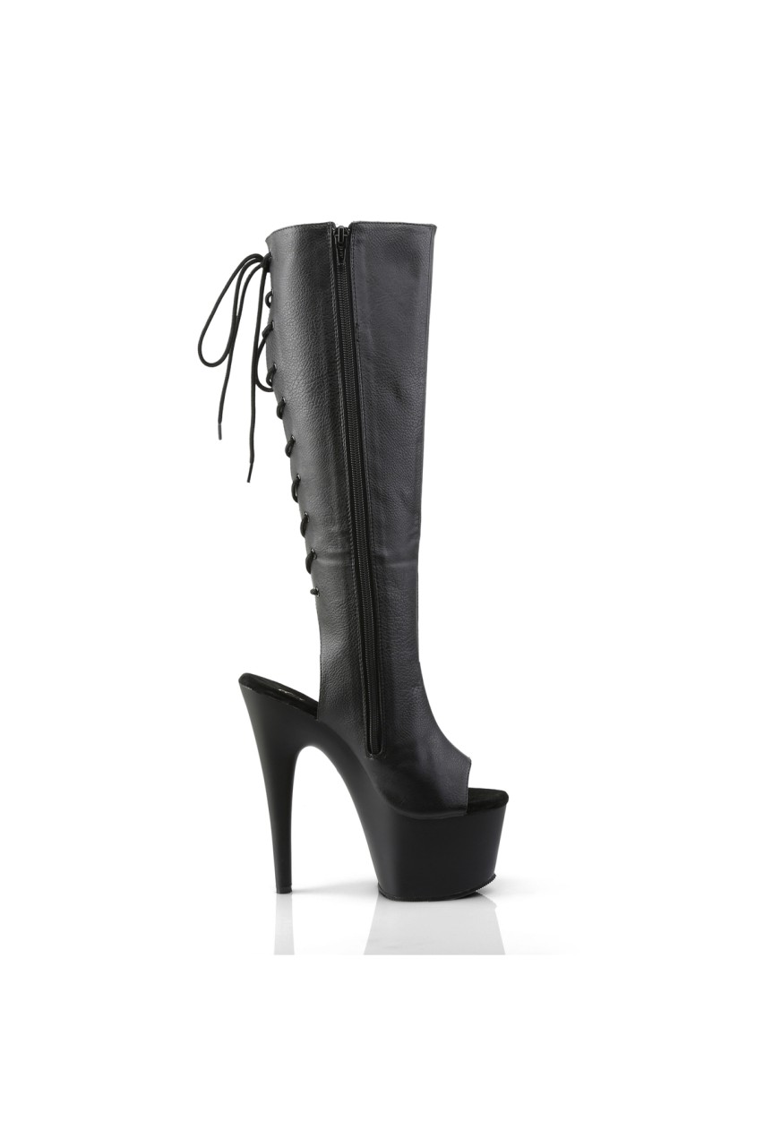 7″” (17.8cm) Stiletto Heel, 2 3/4″” (7cm) Platform Open Toe/Stiletto Heel Back Lace-Up Boot, Side Zip Closure