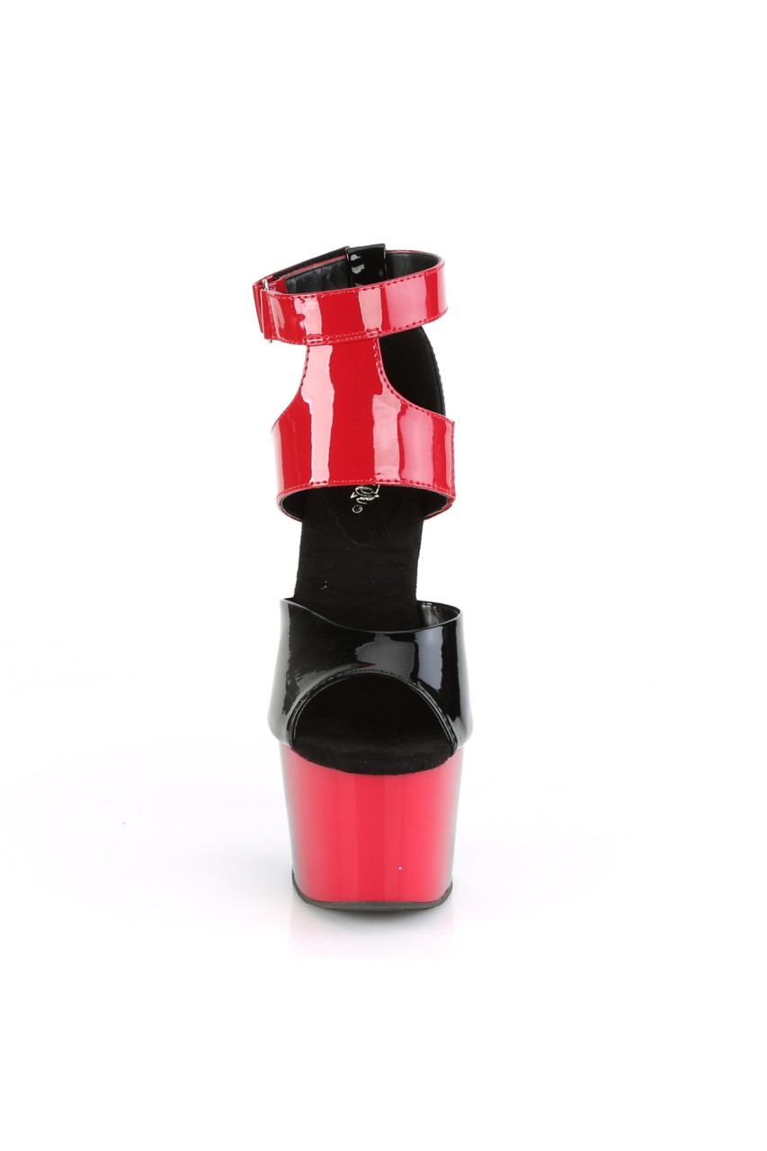7″” (178mm) Heel, 2 3/4″” (70mm) Platform Two Tone Close Back Sandal w/ Hook N’ Loop Ankle Strap