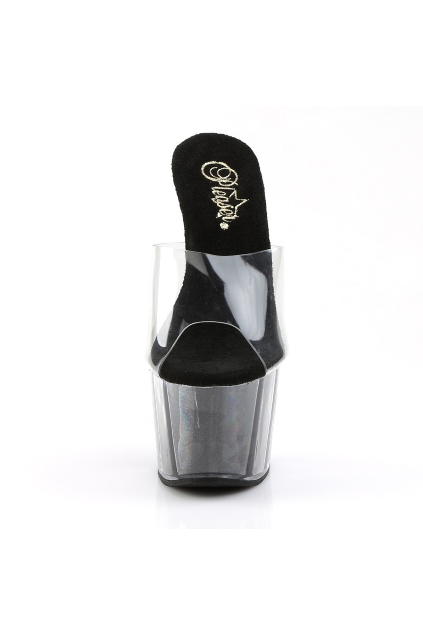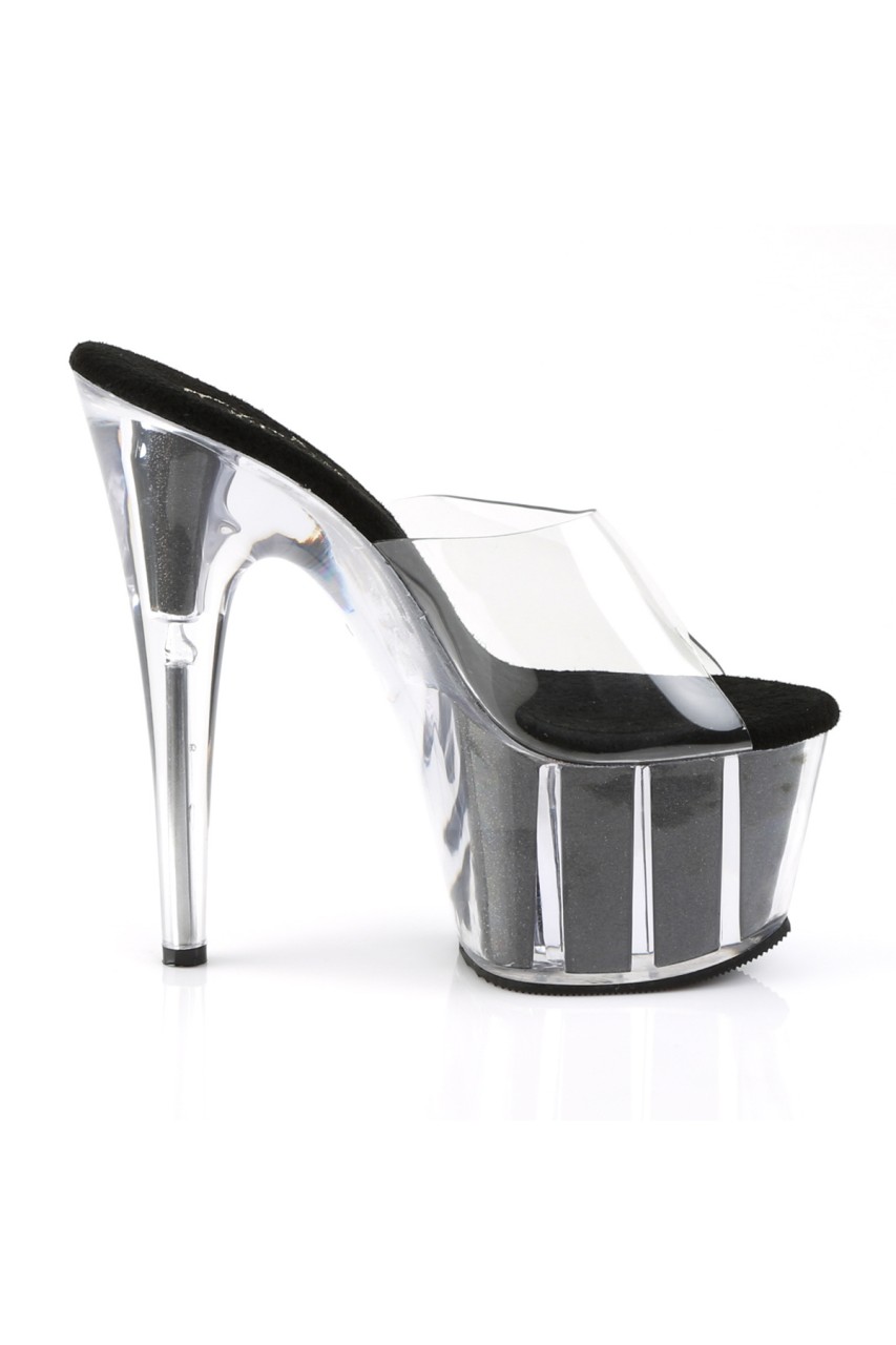 7″” (17.8cm) Stiletto Heel, 2 3/4″” (7cm) Platform Slide, Glitter-filled Platform
