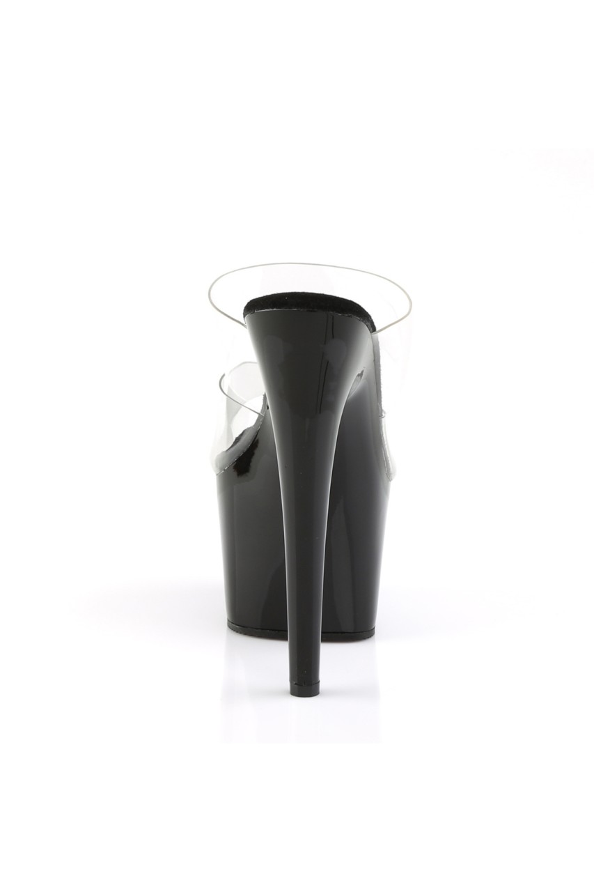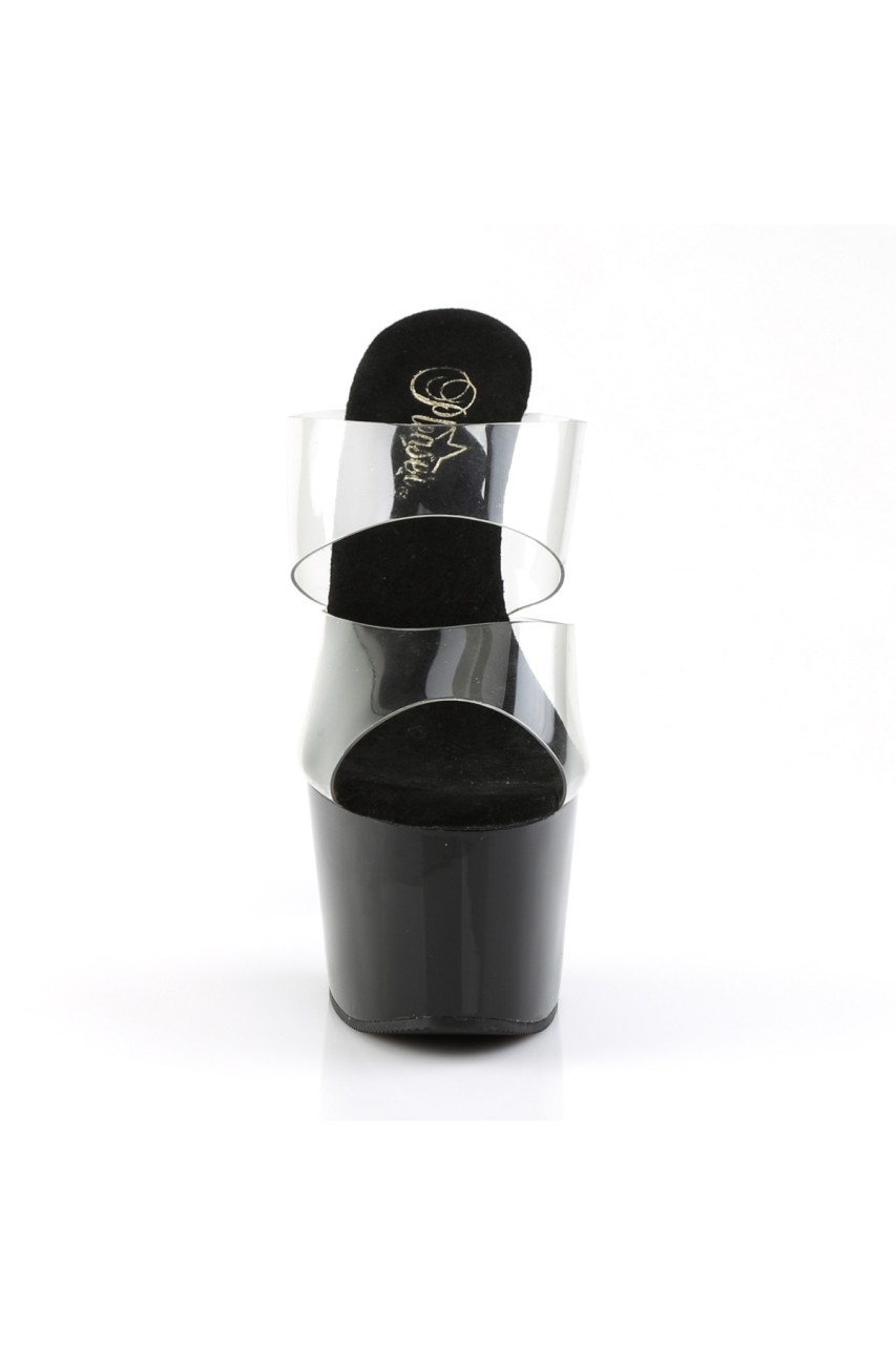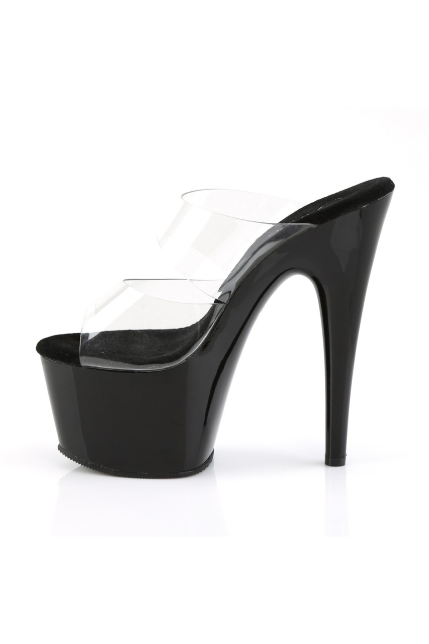 7″” (17.8cm) Stiletto Heel, 2 3/4″” (7cm) Platform Slide Featuring Two-Band Clear Straps
