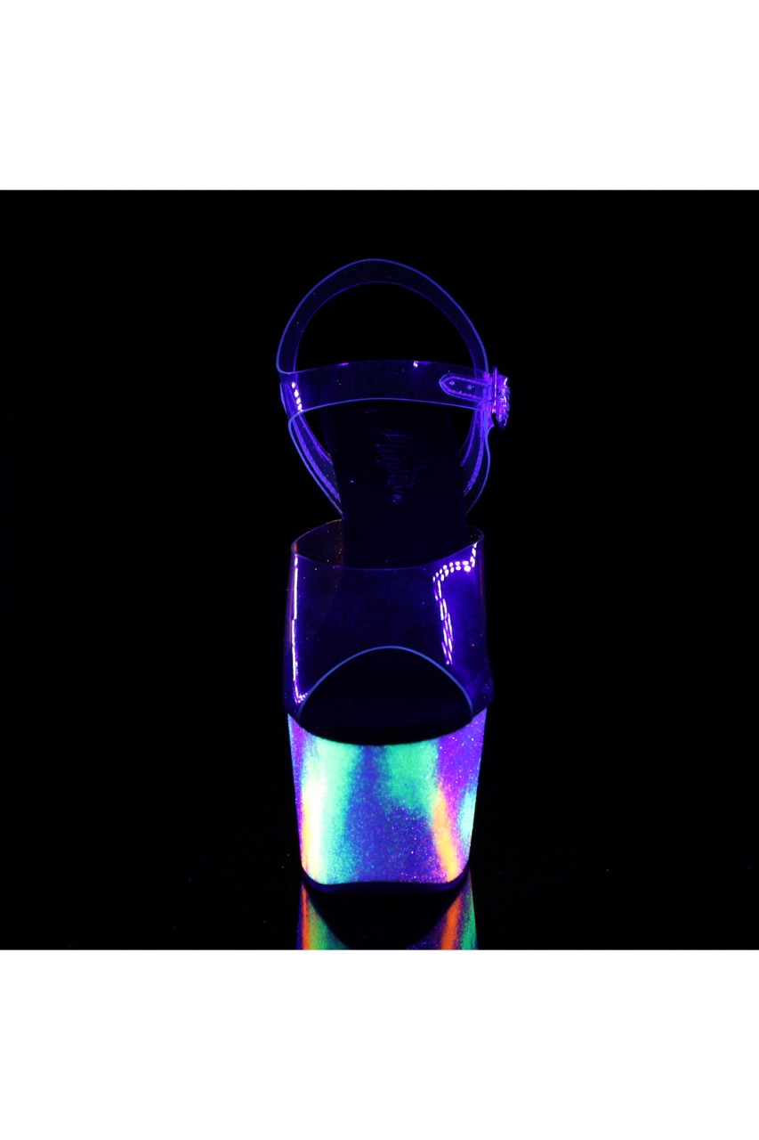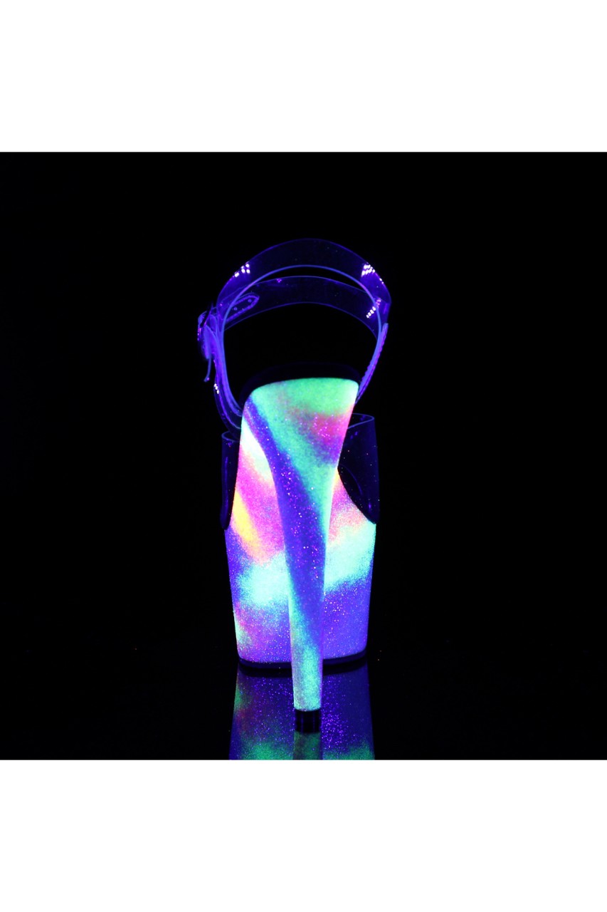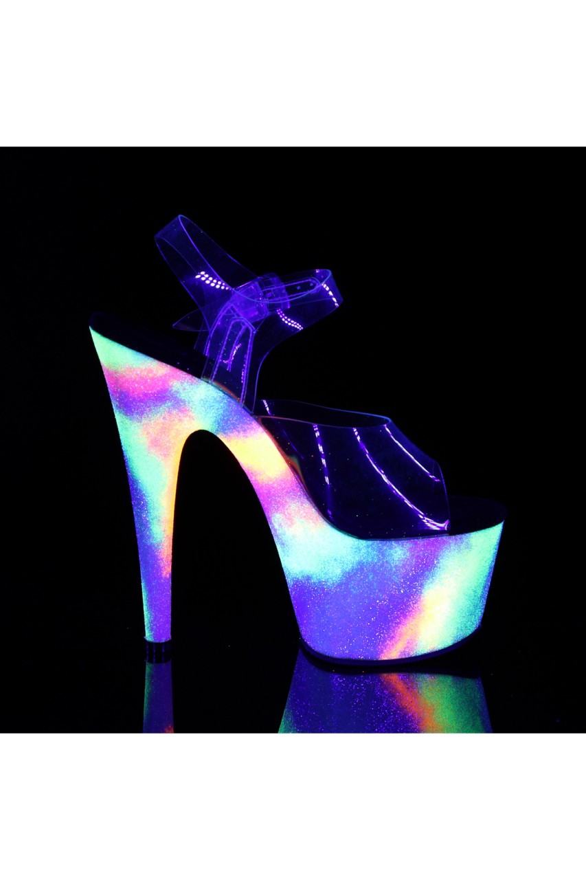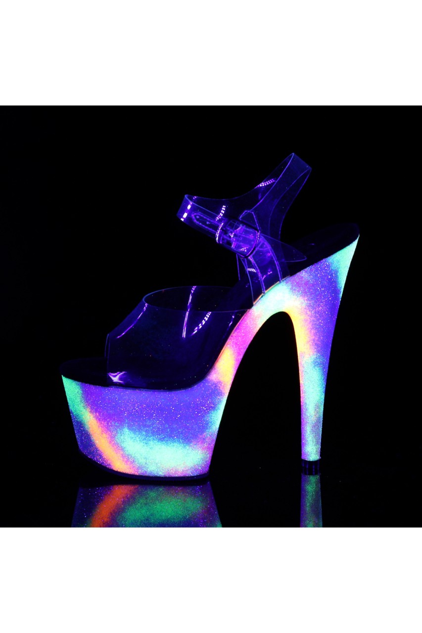 7″” (178mm) Heel, 2 3/4″” (70mm) Platform Ankle Strap Sandal Featuring Blacklight Reactive Galaxy Effect Platform Bottom