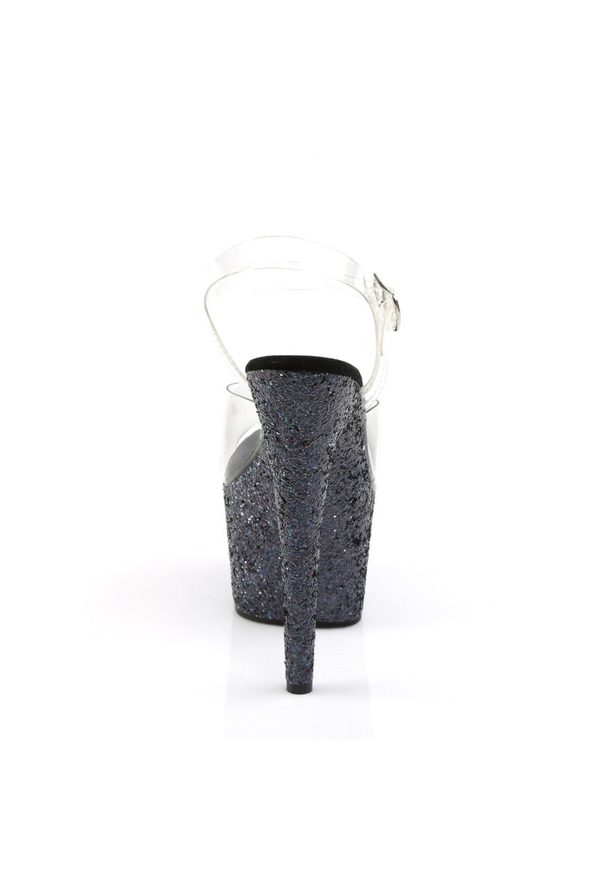 7″” (17.8cm) Stiletto Heel, 2 3/4″” (7cm) Platform Ankle Strap Sandal Featuring Holographic Glitter Covering Entire Platform
