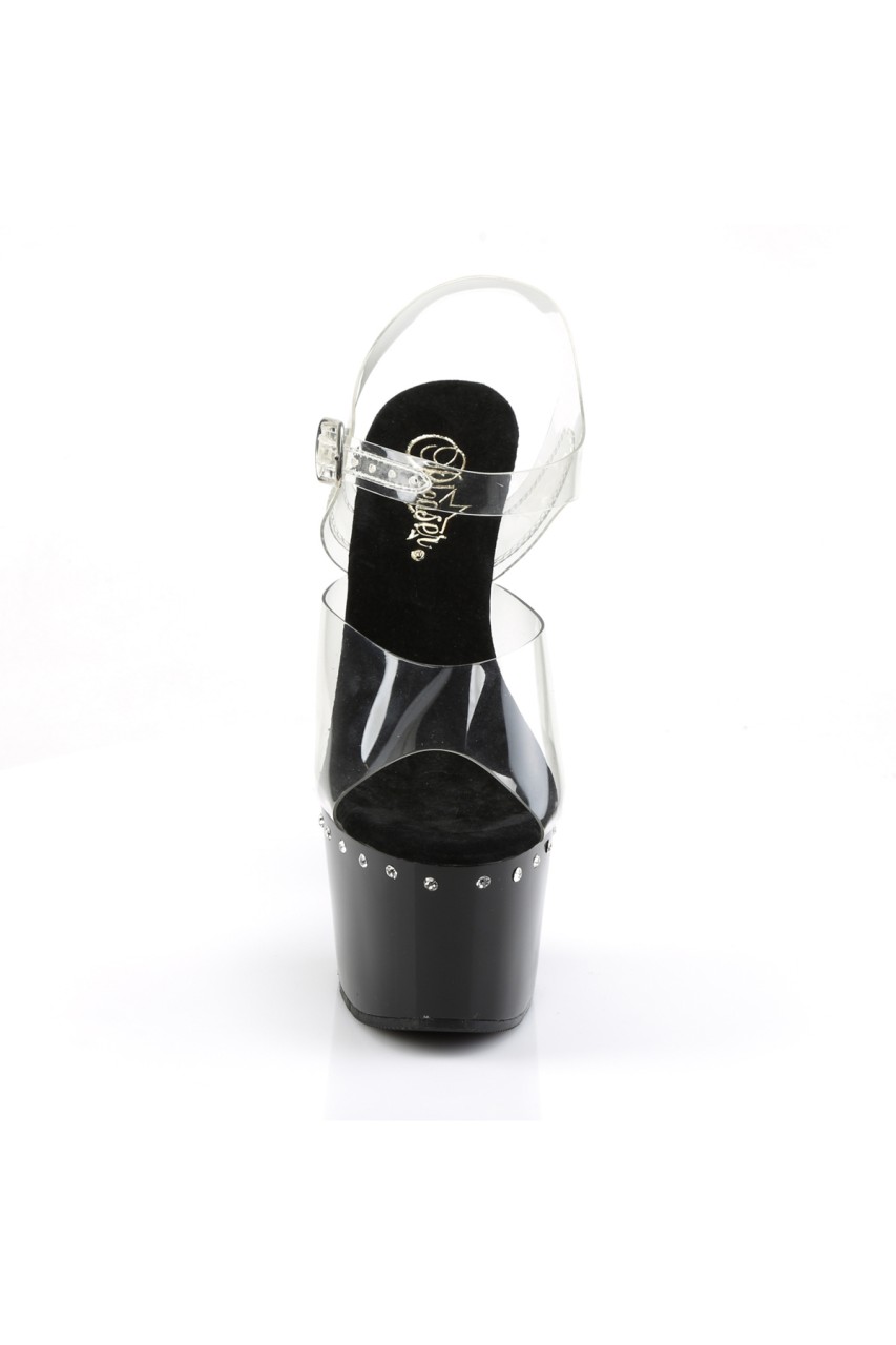 7″” (17.8cm) Stiletto Heel, 2 3/4″” (7cm) Platform Ankle Strap Sandal Featuring 1 Line Rhinestone on Platform & Heel