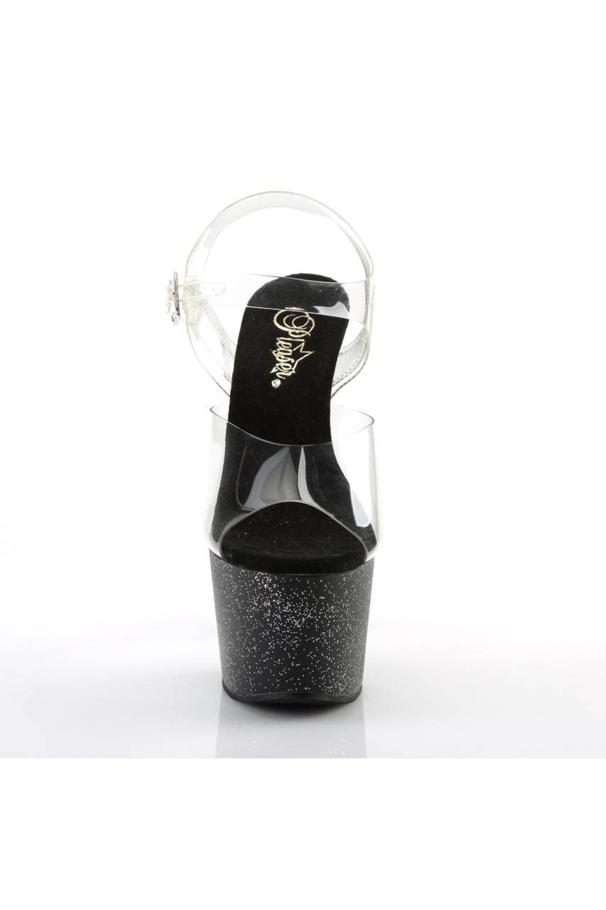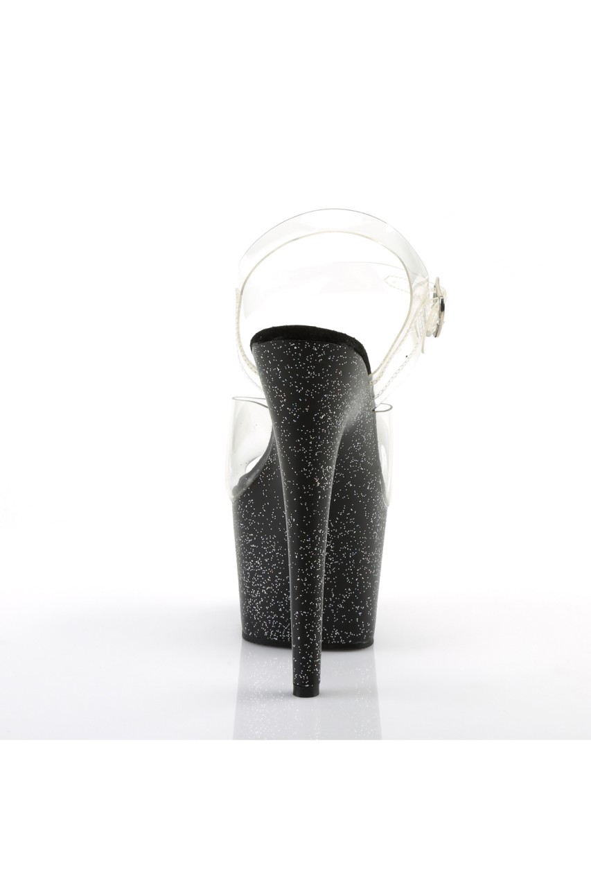 7″” (17.8cm) Stiletto Heel, 2 3/4″” (7cm) Platform Ankle Strap Sandal Featuring Mini Iridescent Glitter on the Entire Platform