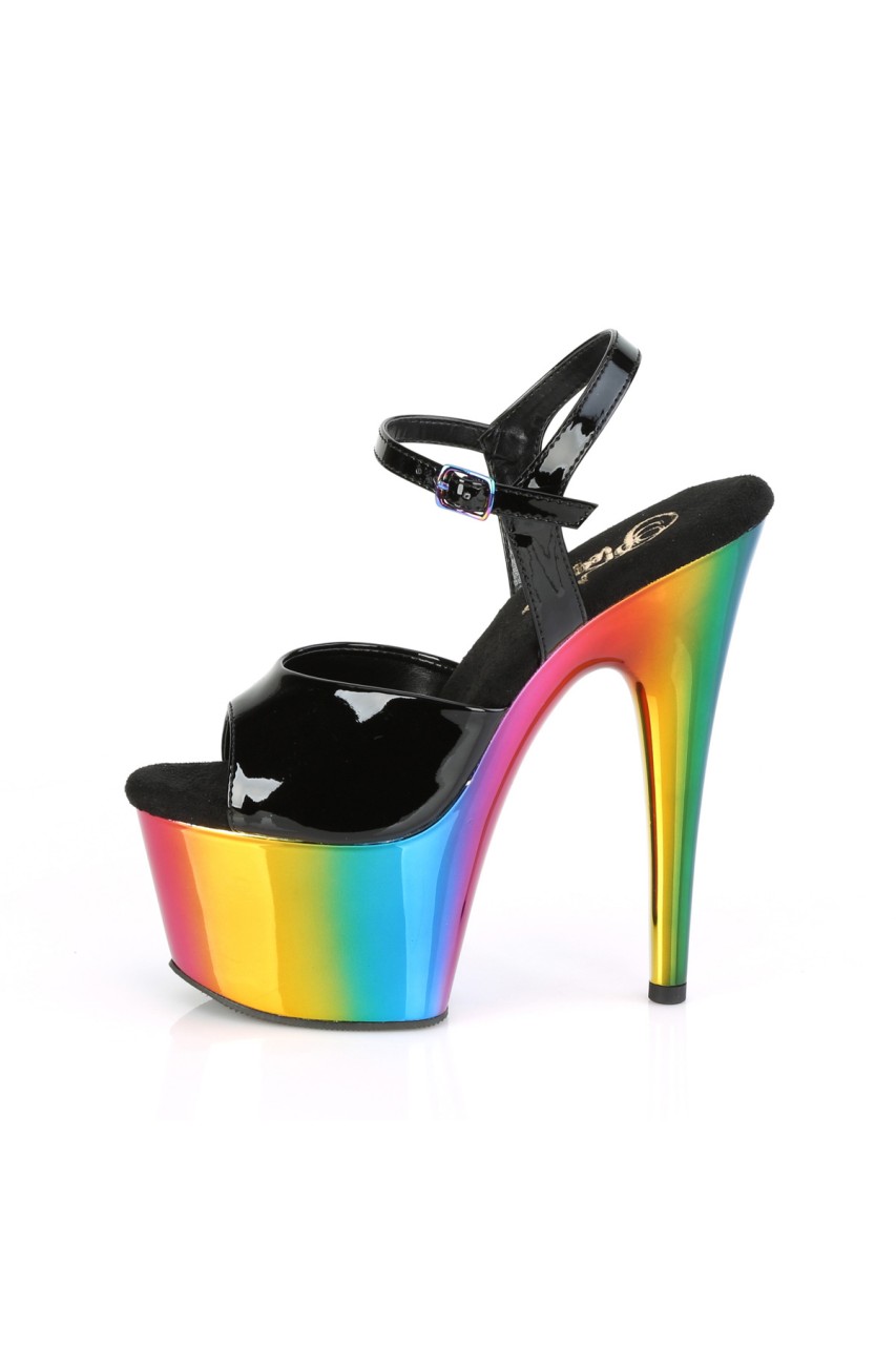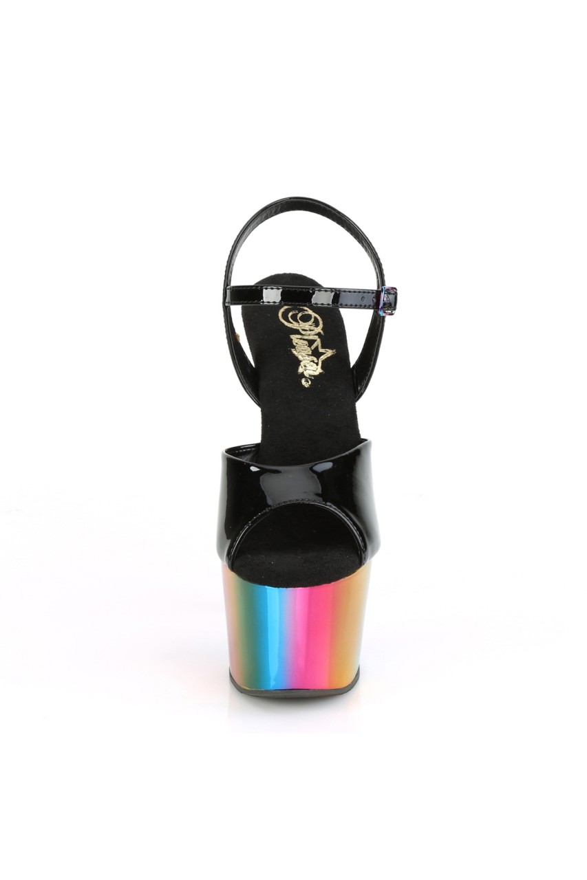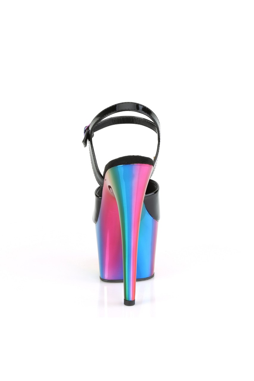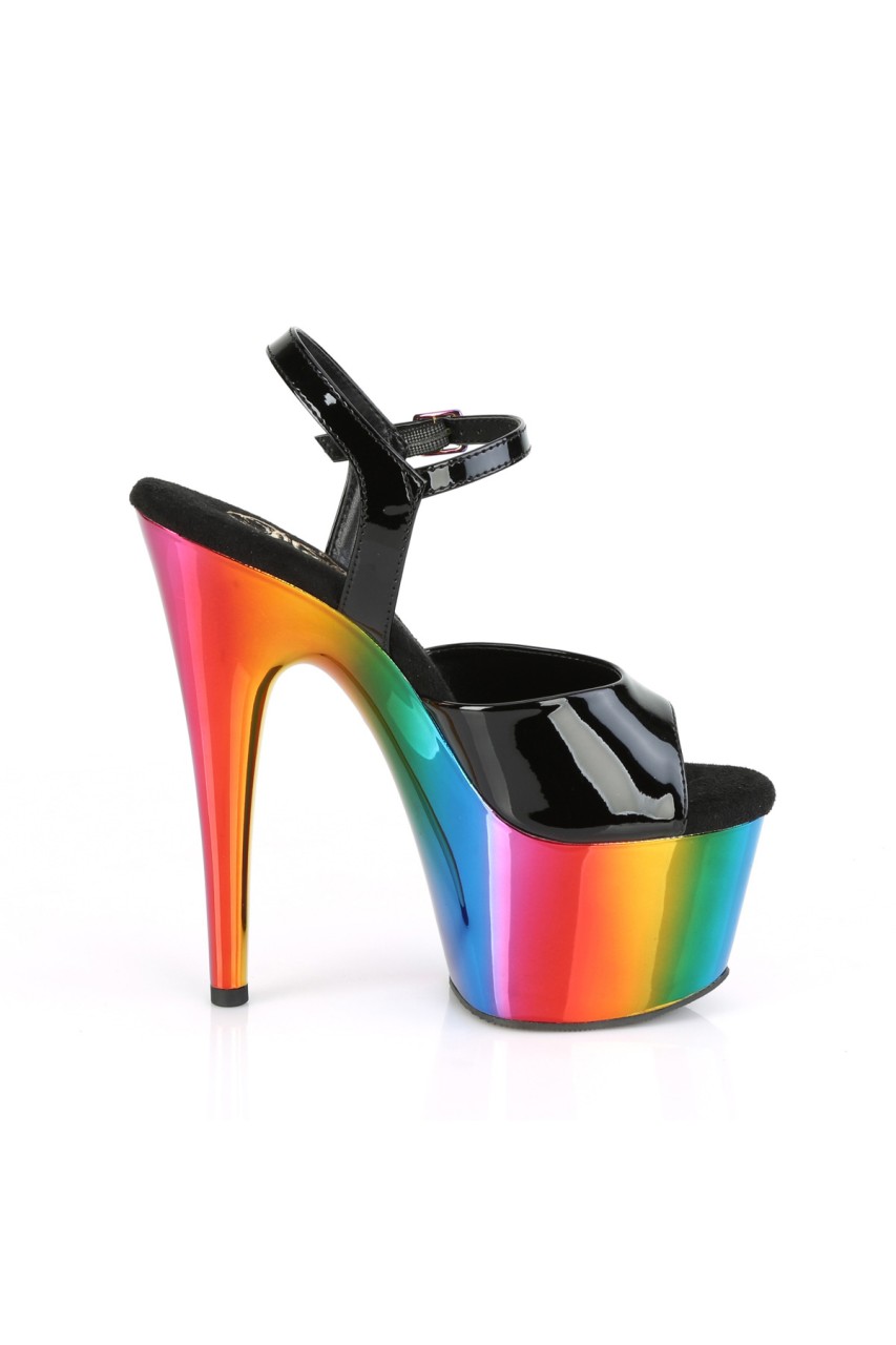 7″” (178mm) Heel, 2 3/4″” (70mm) Platform Ankle Strap Sandal Featuring Rainbow Chrome Plated Platform Bottom