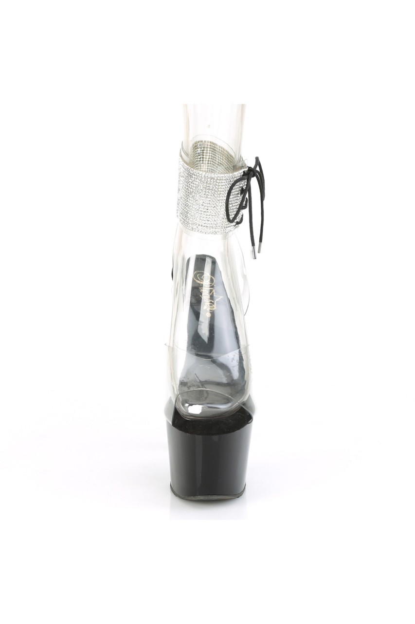 7″” (178mm) Heel, 2 3/4″” (70mm) Platform Rhinestone Embellished Ankle Cuff Sandal w/Side Lacing