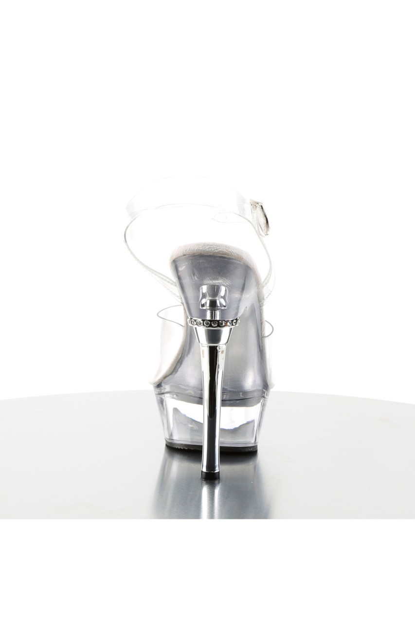5 1/2″” (14cm) Heel, 1 1/2″” (3.8cm) Ankle Strap Sandal Featuring Chrome Heel and Jewel Accent