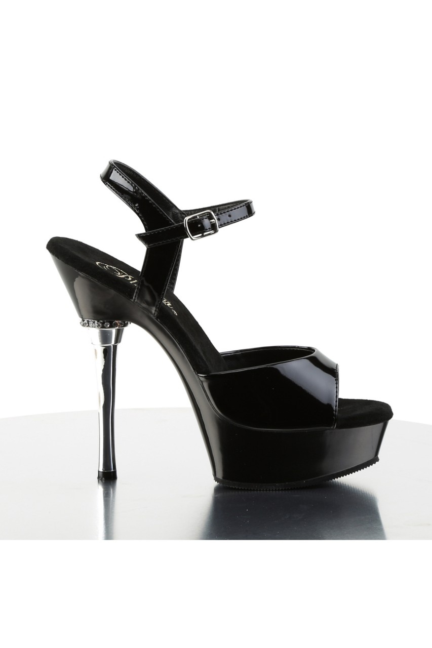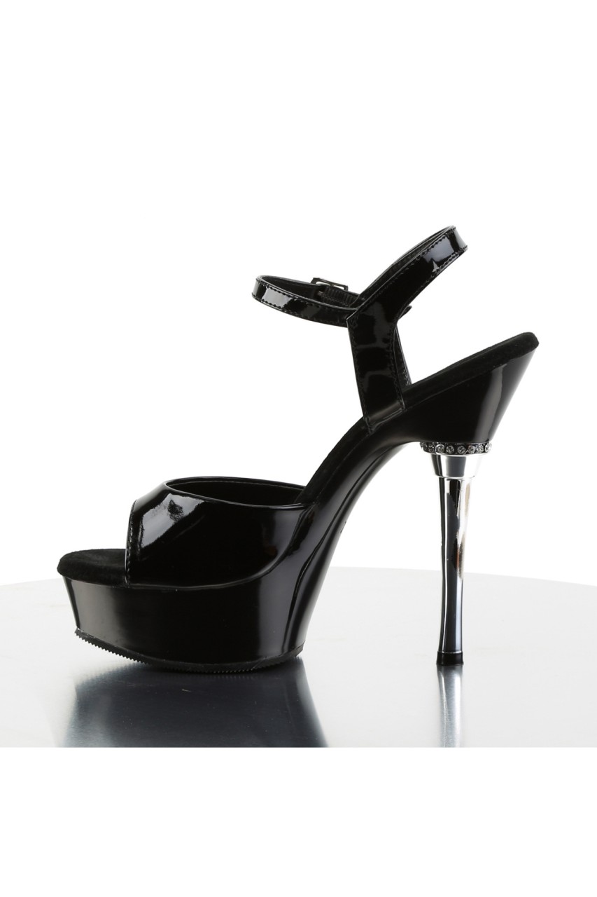 5 1/2″” (14cm) Heel, 1 1/2″” (3.8cm) Ankle Strap Sandal Featuring Chrome Heel and Jewel Accent