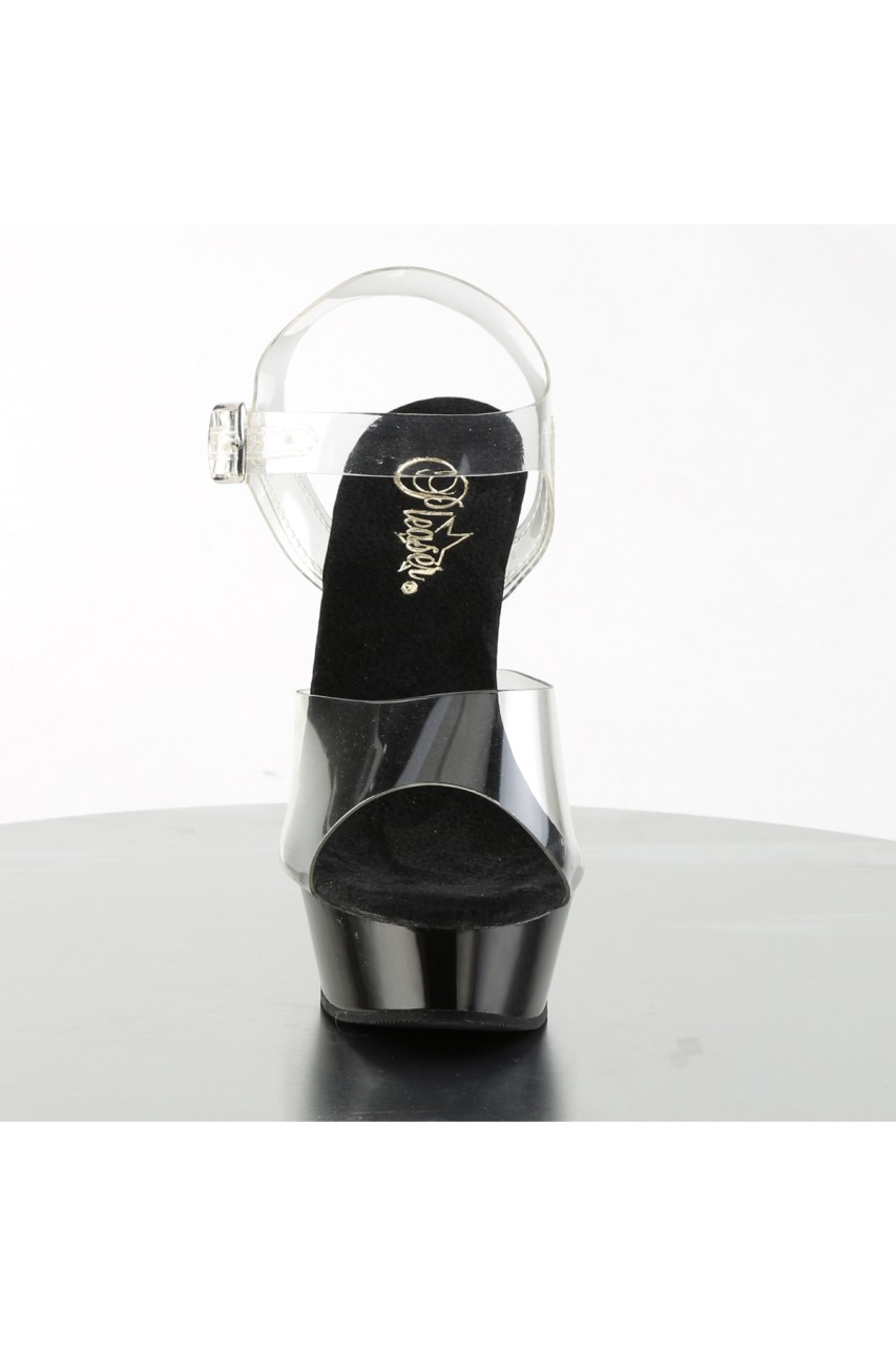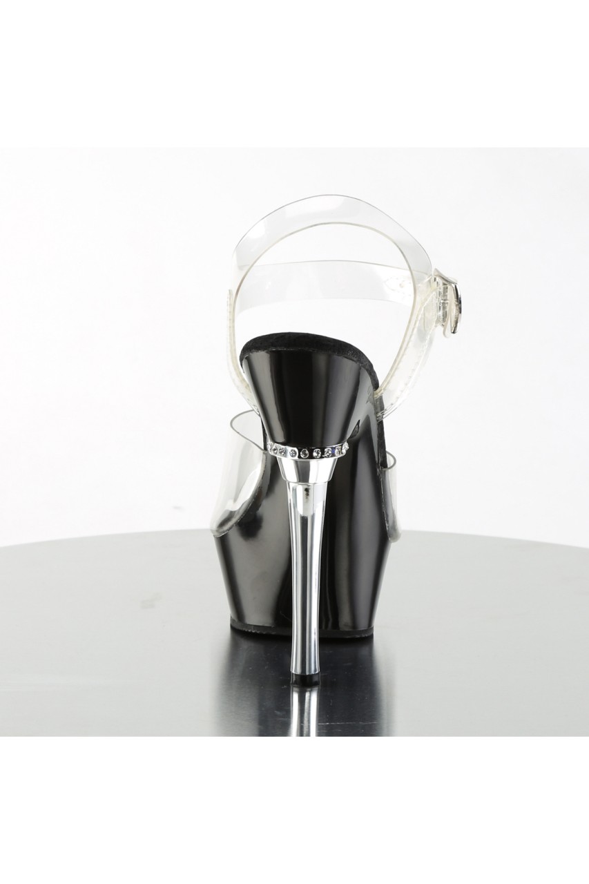 5 1/2″” (14cm) Heel, 1 1/2″” (3.8cm) Ankle Strap Sandal Featuring Chrome Heel and Jewel Accent