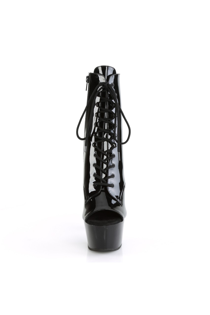 6″” (152mm) Heel, 2 1/4″” (57mm) Platform Open Toe Lace-Up Front Ankle Boot, Inner Side Zip Closure