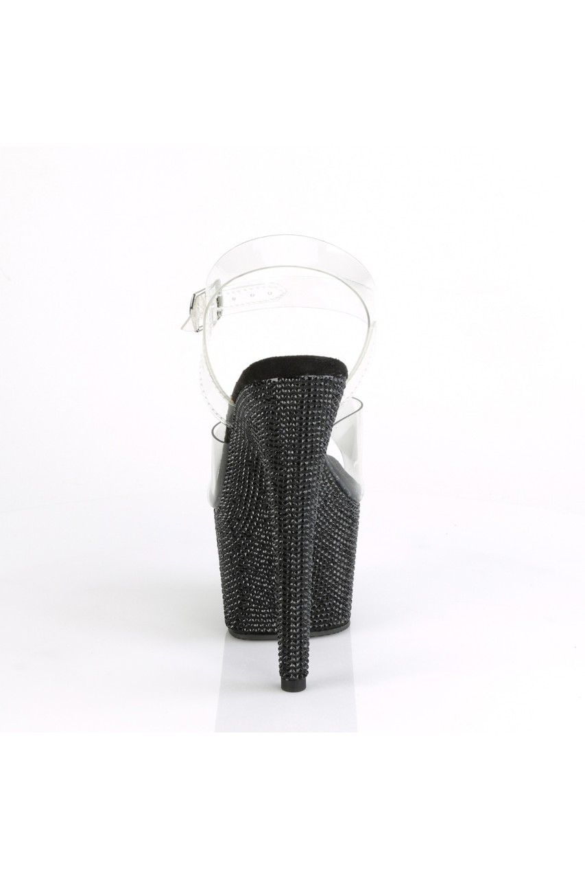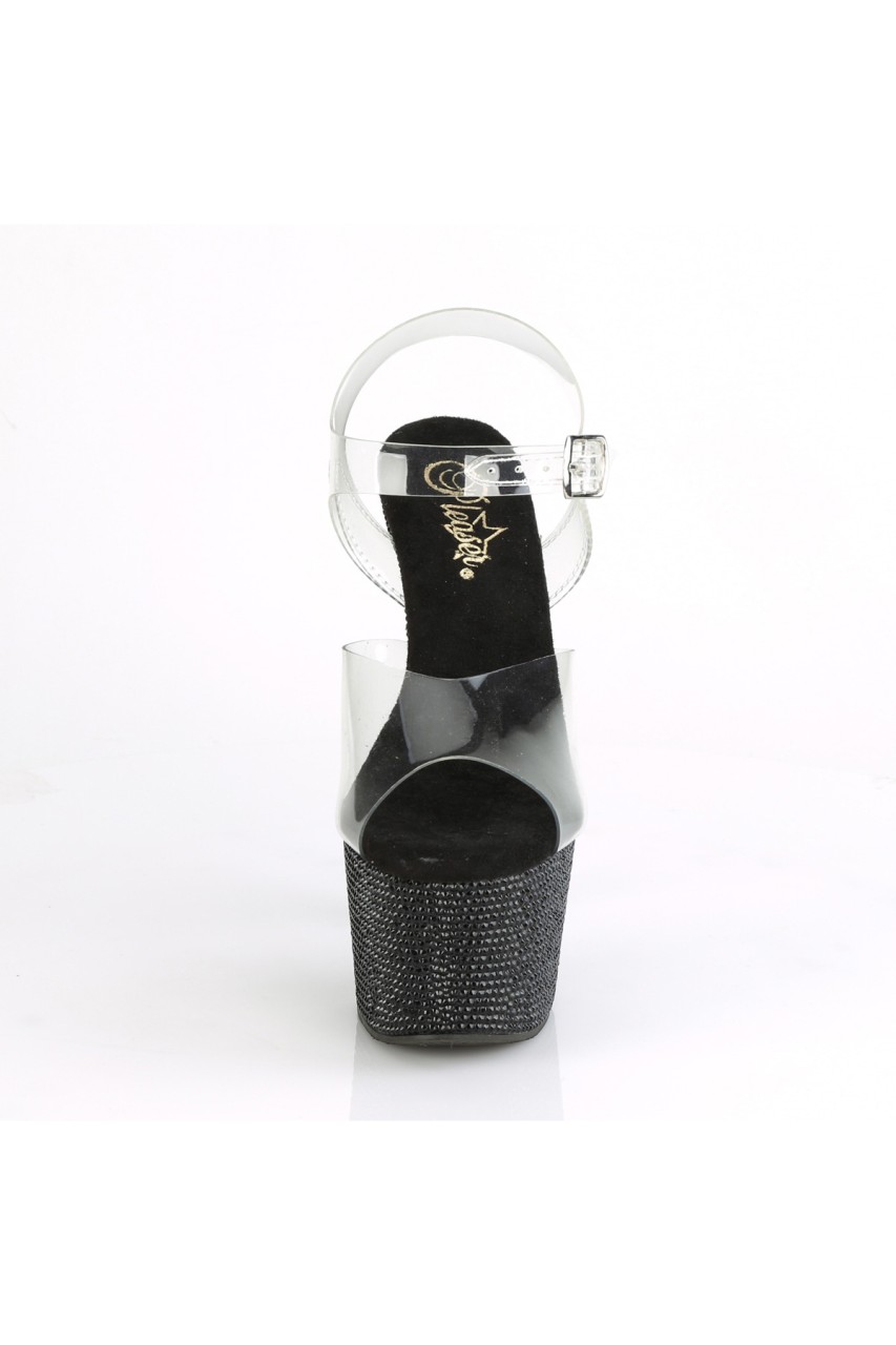7″” (178mm) Heel, 2 3/4″” (70mm) Platform Ankle Strap Sandal Featuring Rhinestones Encrusted All-Over the Entire Platform Bottom