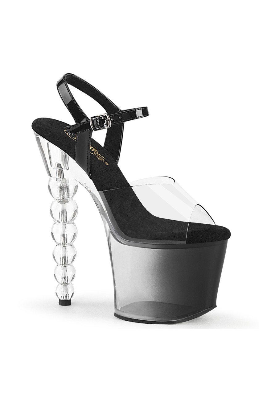 7″” (178mm) Stacked Heel, 2 3/4″” (70mm) Platform Ankle Strap Sandal Featuring Black/Clear Ombre Platform Bottom