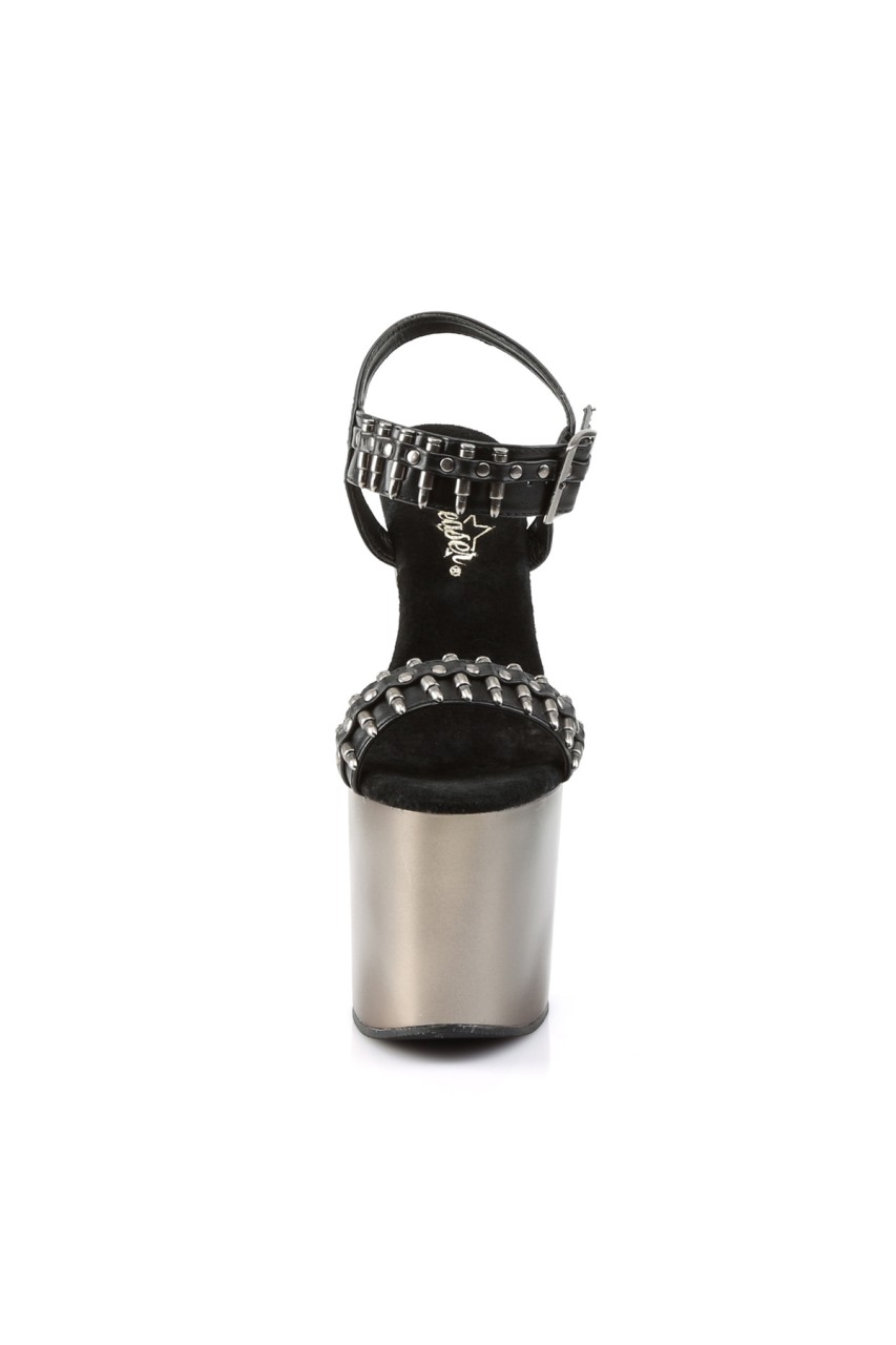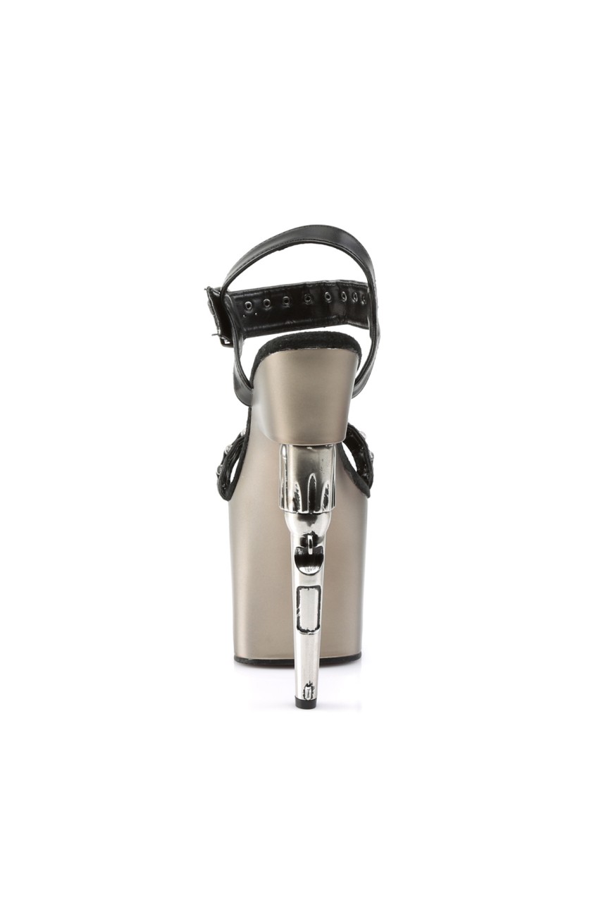 7 1/2″” (19cm) Gun Heel 3 1/2″” (8.9cm) Platform Ankle Strap Platform Sandal with Bullet Strap