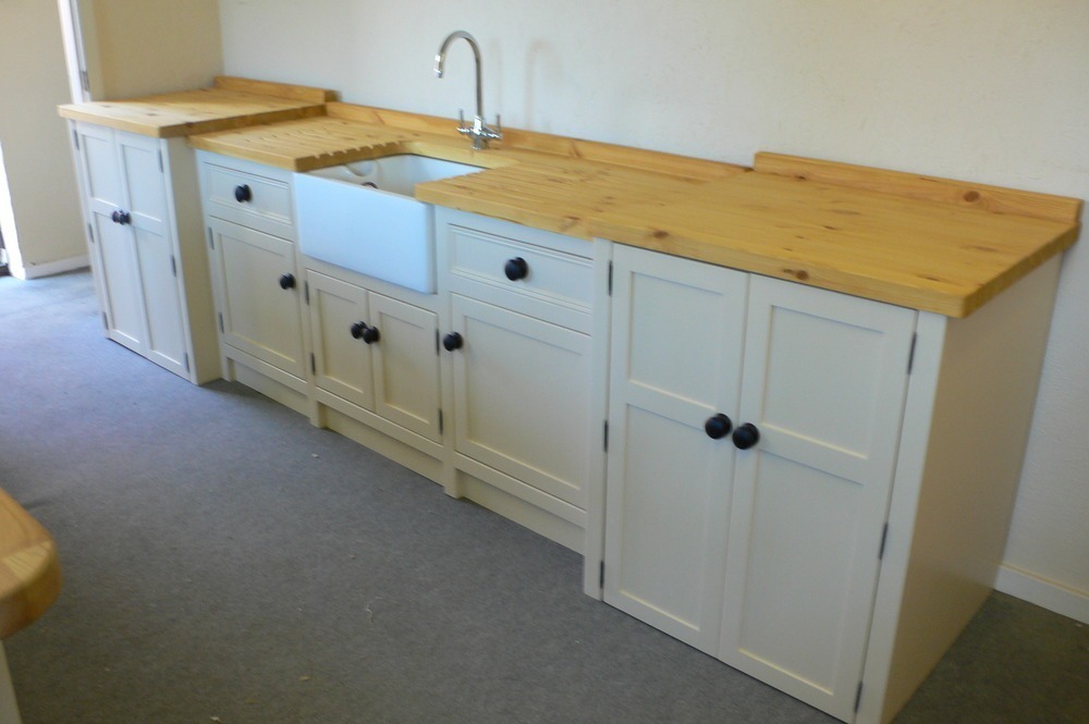 This unit has plenty of everything-loads of storage, two big cupboards in which to house freestanding machines (such as dishwashers, washing machines etc.) A large Belfast sink. This large Belfast sink and appliance unit has been finished in farrow and balls 'ringwold ground', with contrasting ebonised knobs and topped with a 25mm thick Pine Worktop,these are treated with our waterproof antique pine wax to make them durable.