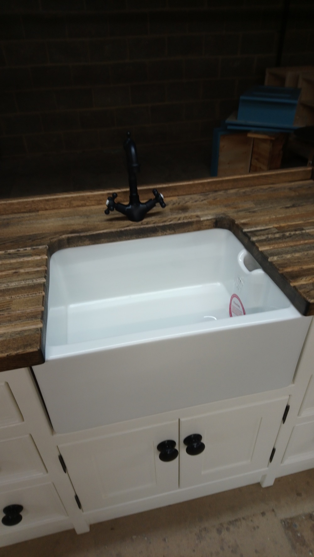 600mm Belfast Sink and Black mixer tap.