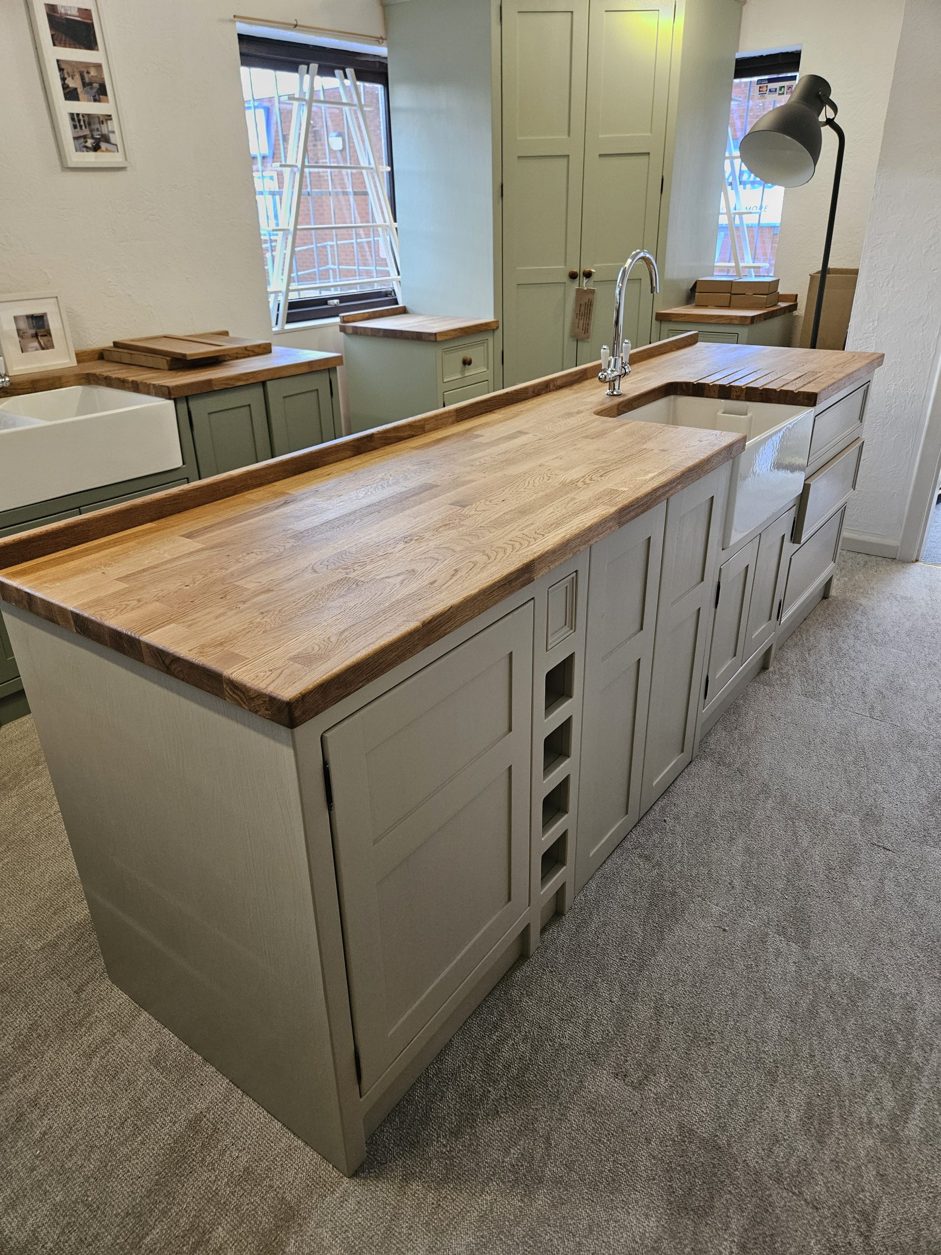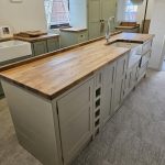 A stock item that is already made and painted with a 40mm oak worktop- all ready to be delivered.
