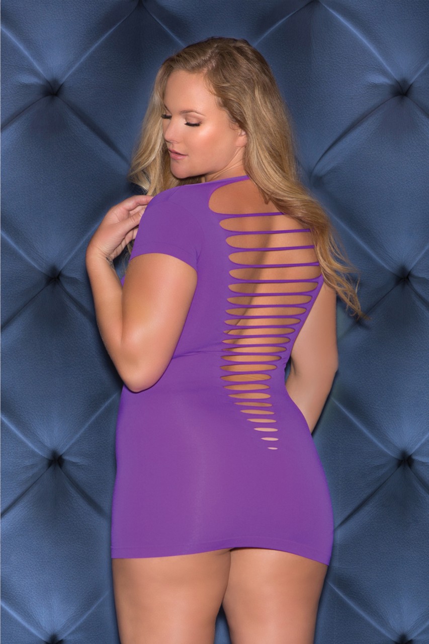 Sweet Thing. Cap sleeve scoop neck mini dress with deep v cut out back.90% Nylon 10% Spandex