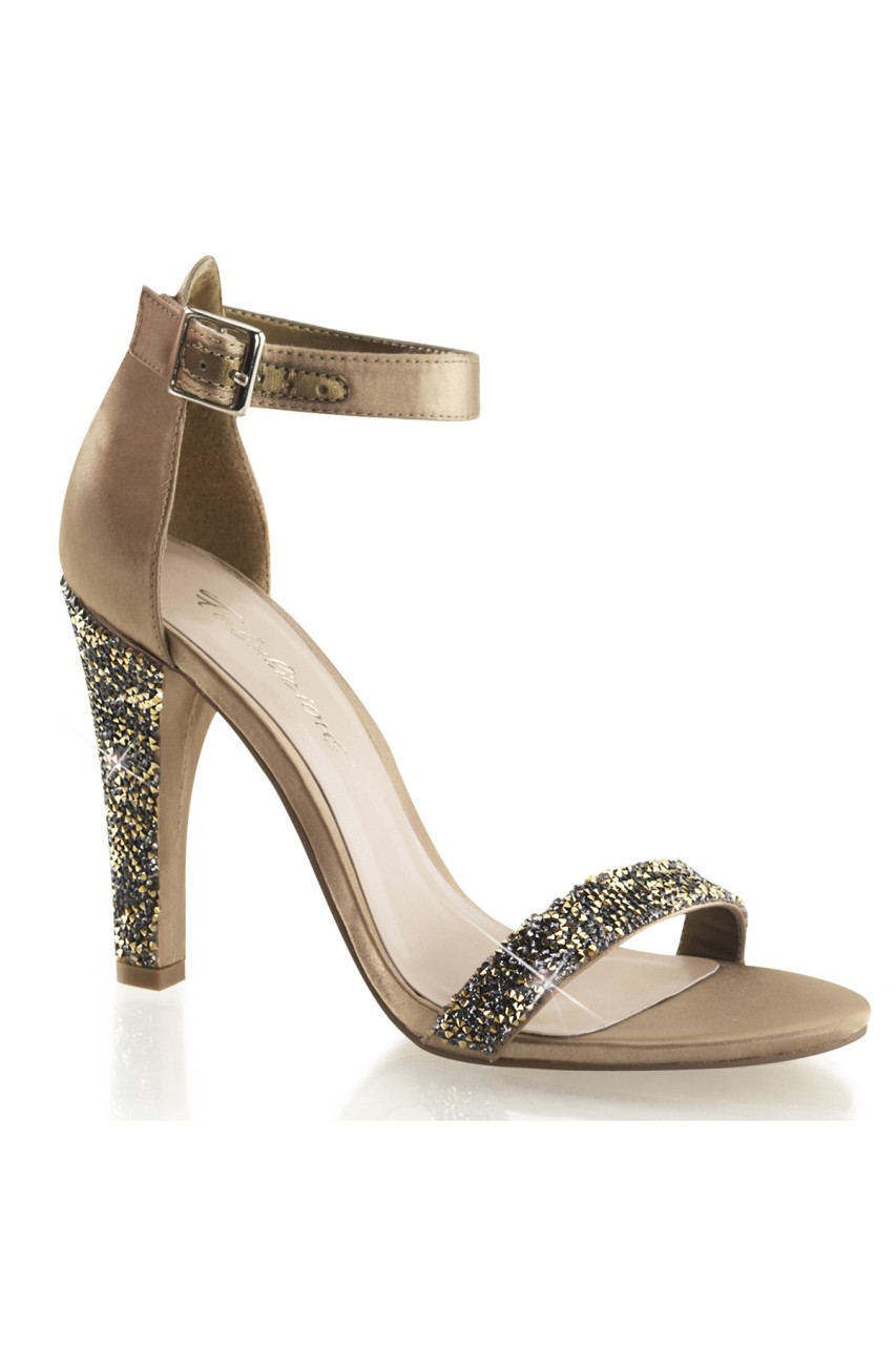4″” (105 mm) Lucite Heel Closed Back Ankle Strap Sandal W/ RS Embellished on Toe Strap and Heel