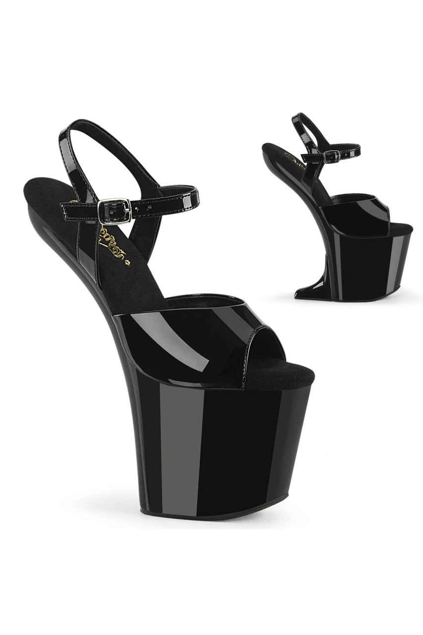 8″” (200mm) Heelless, 3″” (76mm) Platform Ankle Strap Sandal. Can be Transformed into a Mini Wedge Sandal with the Included Heel
