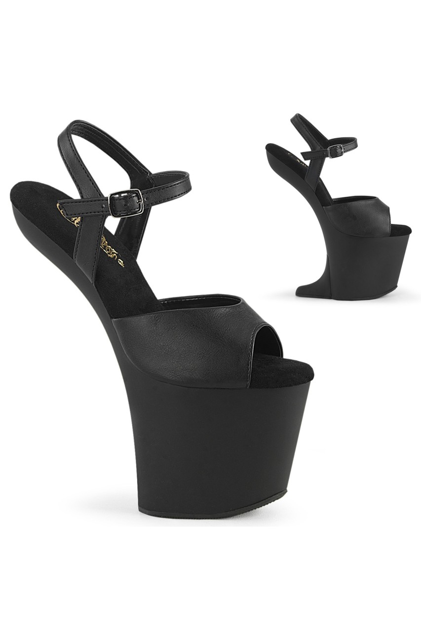 8″” (200mm) Heelless, 3″” (76mm) Platform Ankle Strap Sandal. Can be Transformed into a Mini Wedge Sandal with the Included Heel