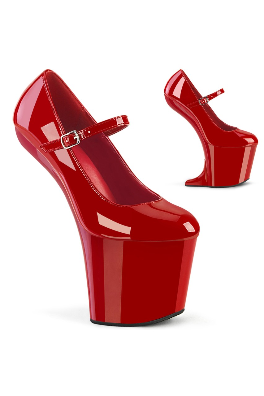 8″” (200mm) Heelless, 3″” (76mm) Platform Mary Jane Pump. Can be Transformed into a Mini Wedge Sandal with the Included Heel
