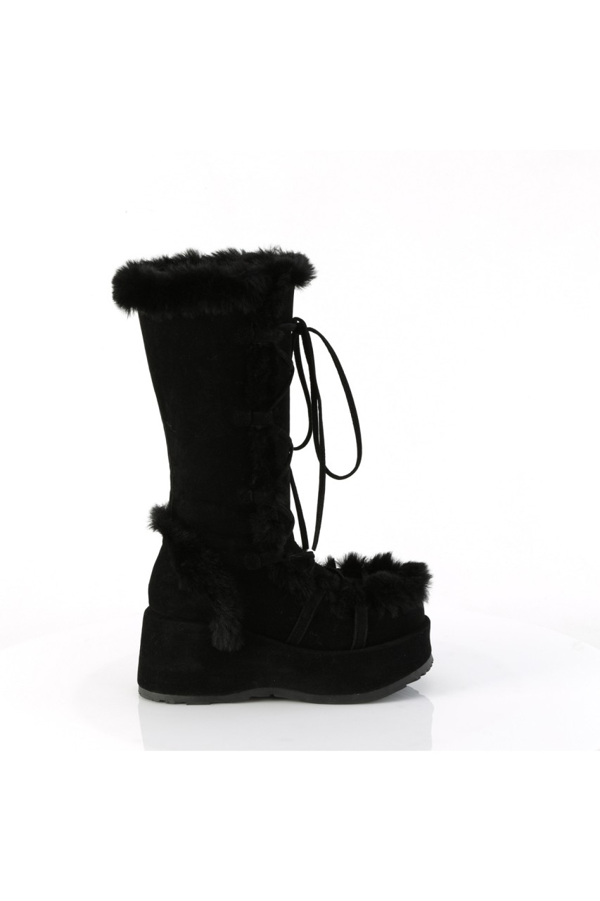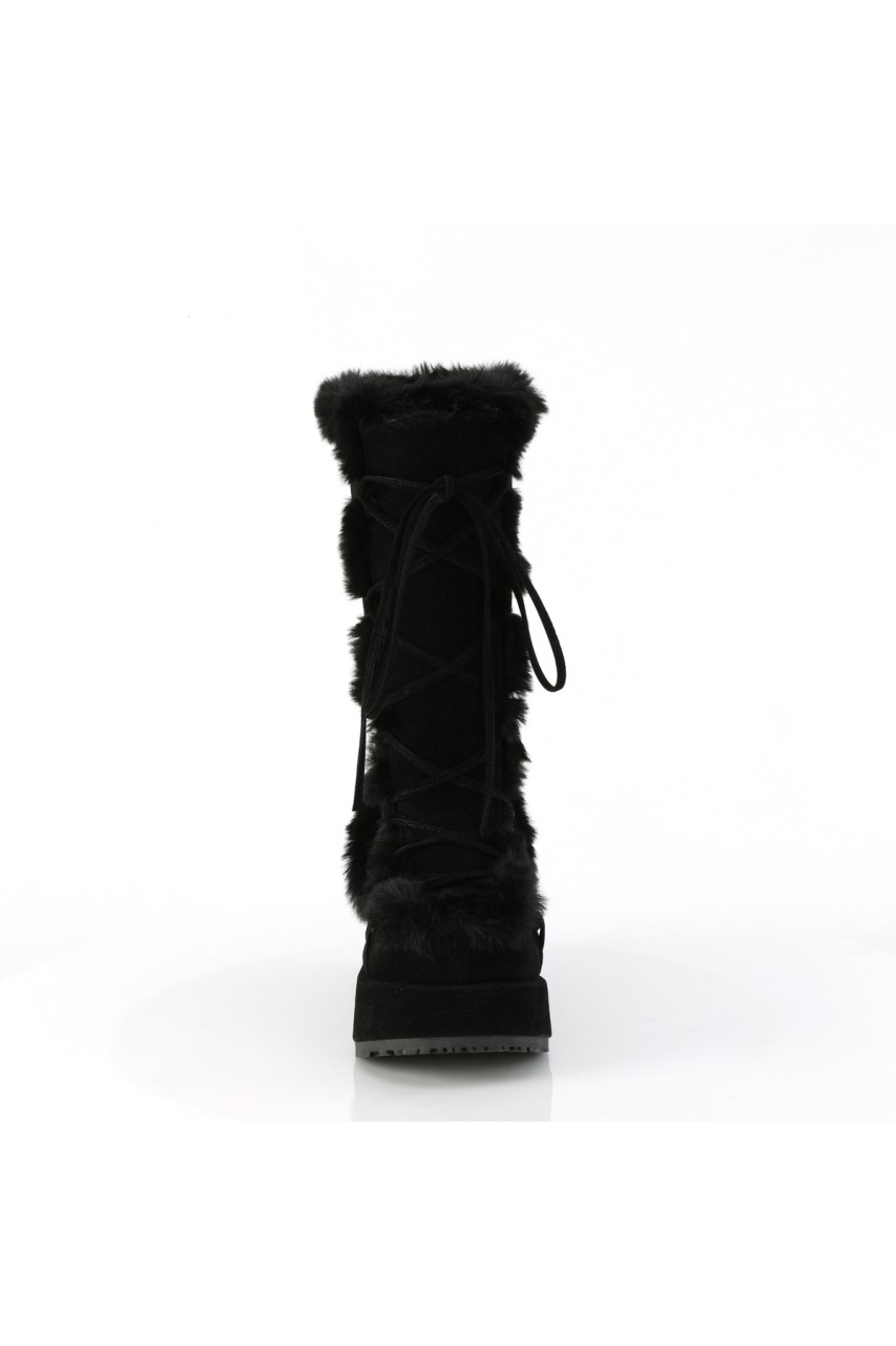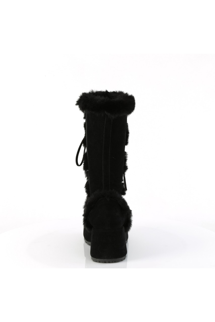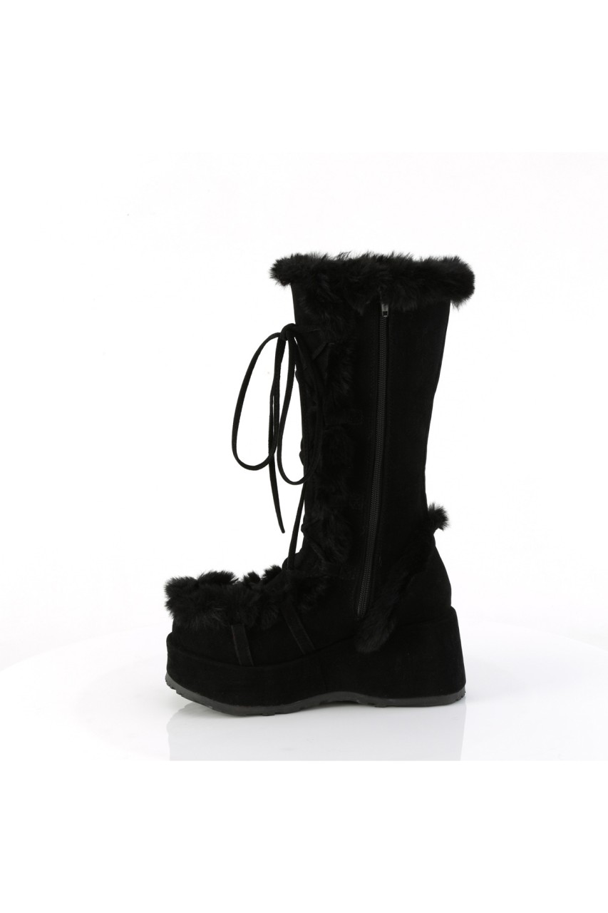2 3/4″” (70mm) Platform Lace-Up Mid-Calf Boot Featuring Faux Fur Trim Detail, Full Inner Side Zip Closure