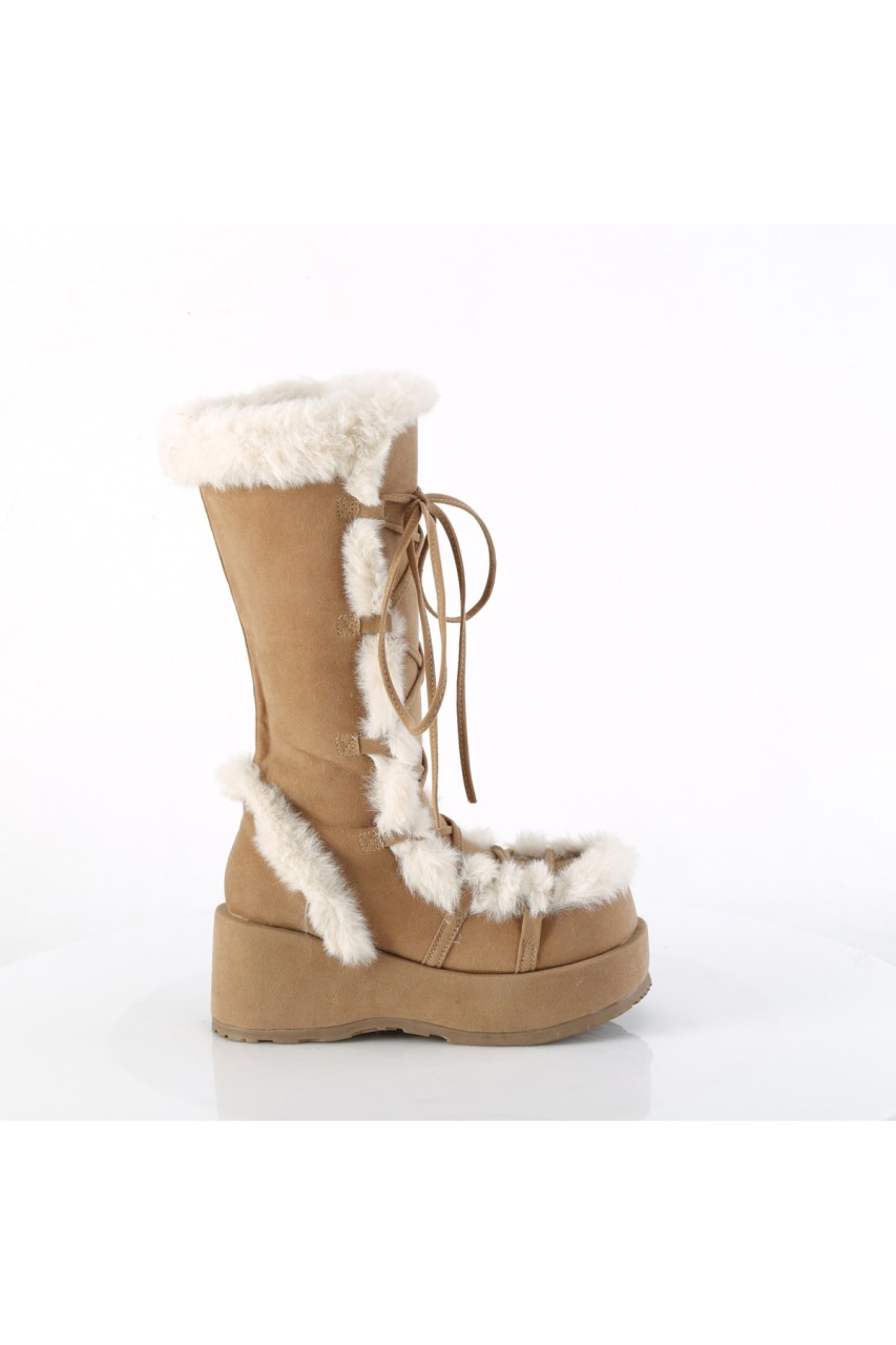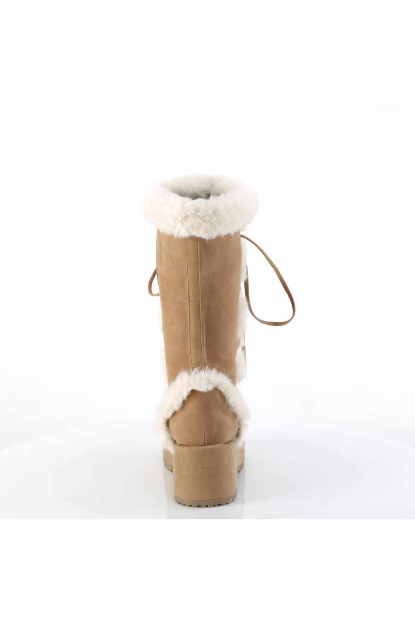 2 3/4″” (70mm) Platform Lace-Up Mid-Calf Boot Featuring Faux Fur Trim Detail, Full Inner Side Zip Closure