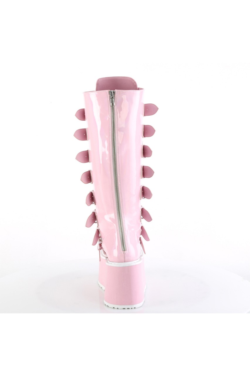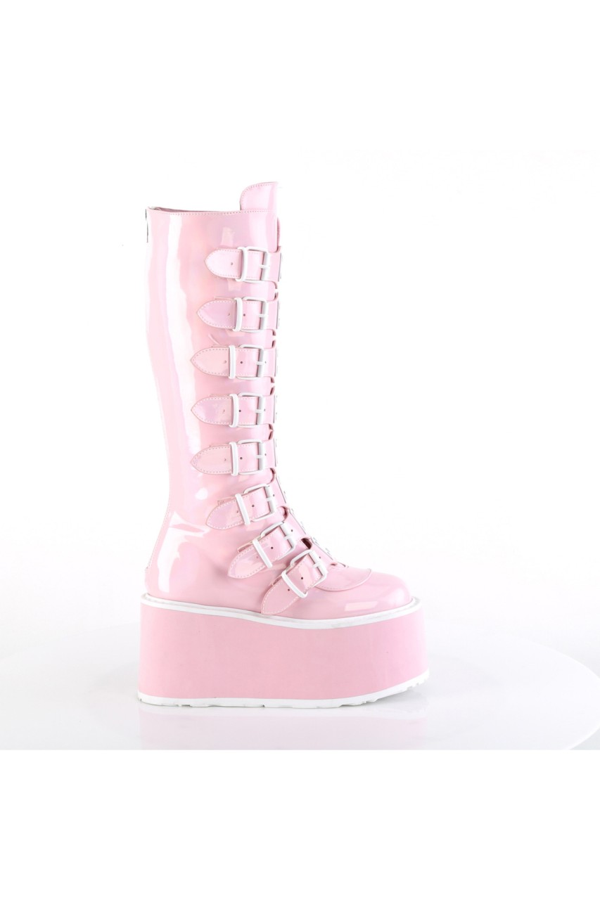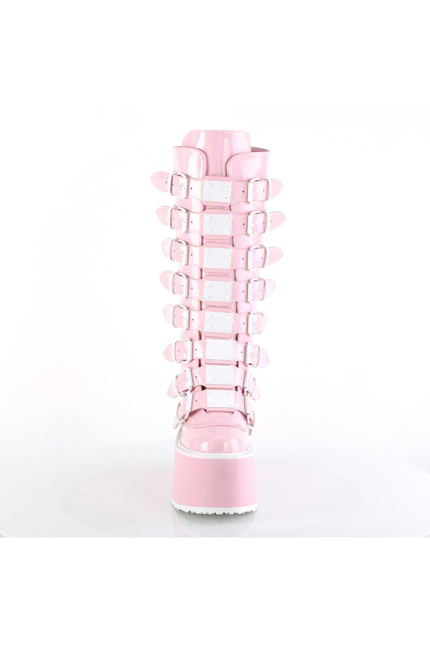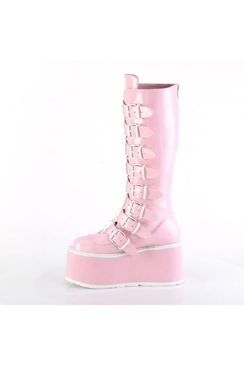 3 1/2″” (90mm) Platform Knee High Boot Featuring 8 Buckle Straps w/ Metal Plates at Center, Back Metal Zip Closure