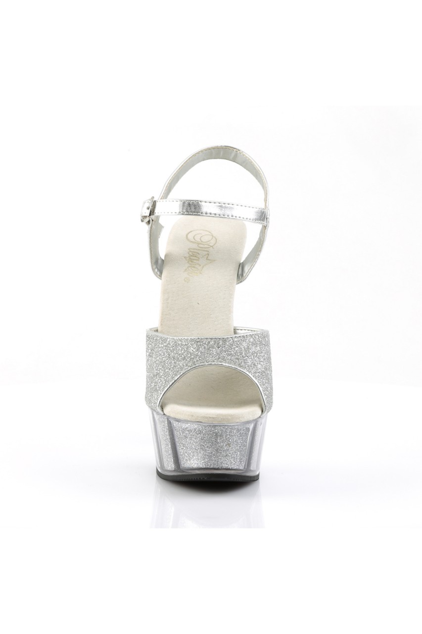 6″” (15.2cm) Stiletto Heel, 1 3/4″” (4.5cm) Platform Ankle Strap Sandal Featuring Mini Glitter Upper and Filled Bottom