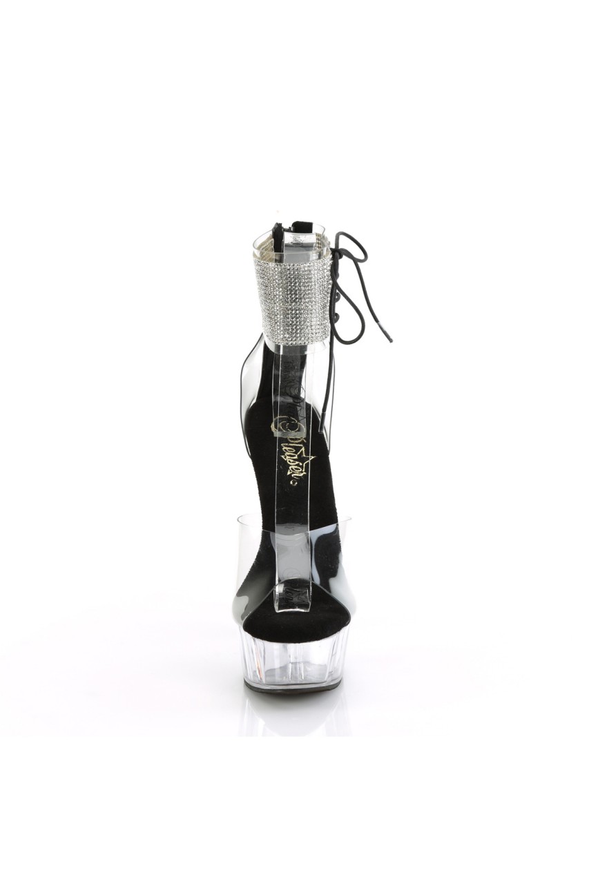 6″” (152mm) Heel, 1 3/4″” (45mm) Platform Close Back Rhinestone Embellished Ankle Cuff Sandal w/Side Lacing, Back Zip Closure