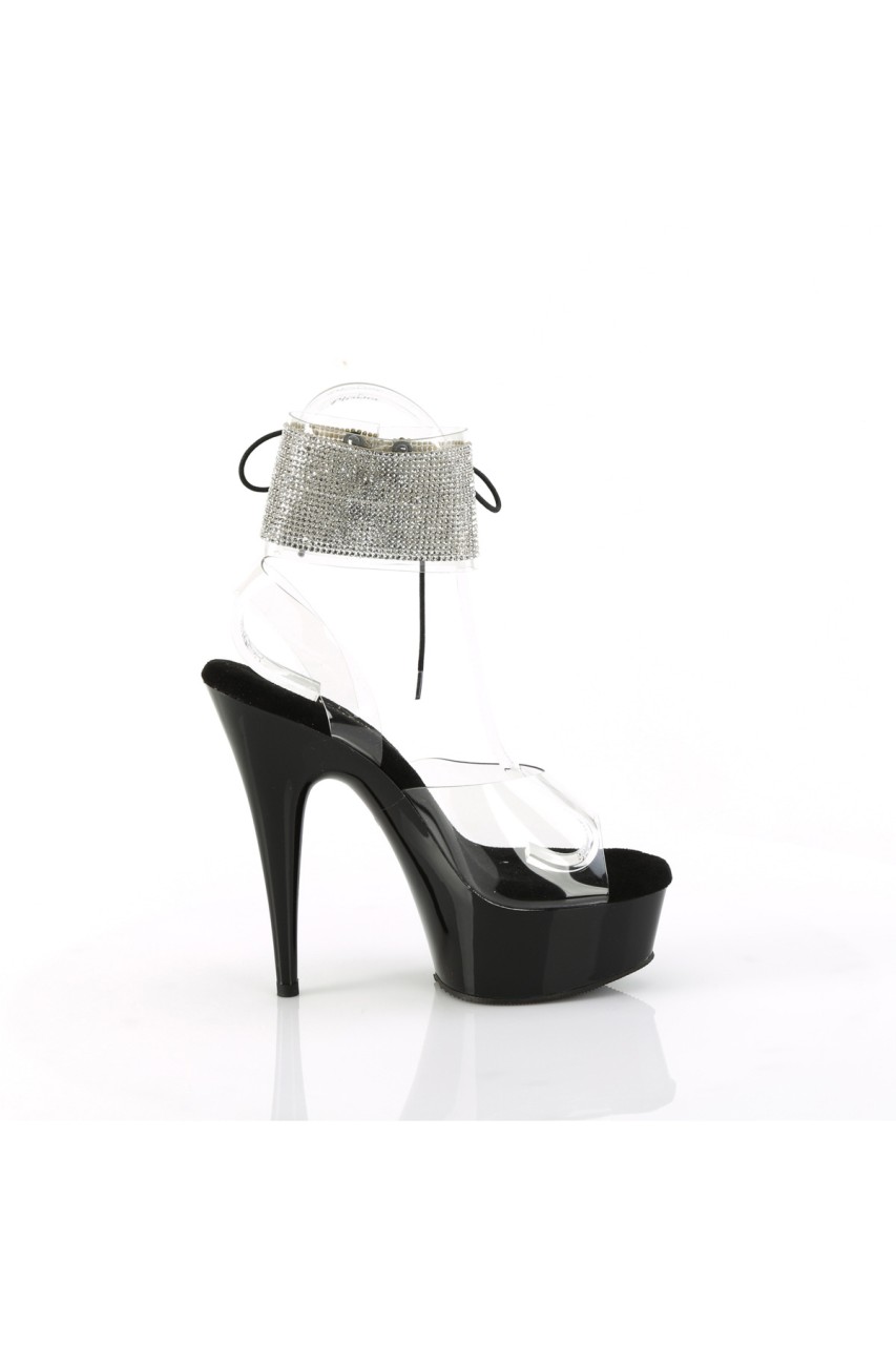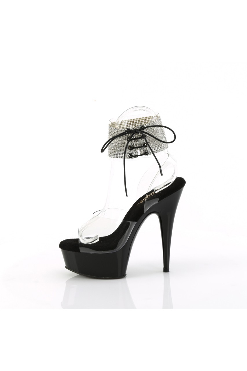 6″” (152mm) Heel, 1 3/4″” (45mm) Platform Rhinestone Embellished Ankle Cuff Sandal w/Side Lacing
