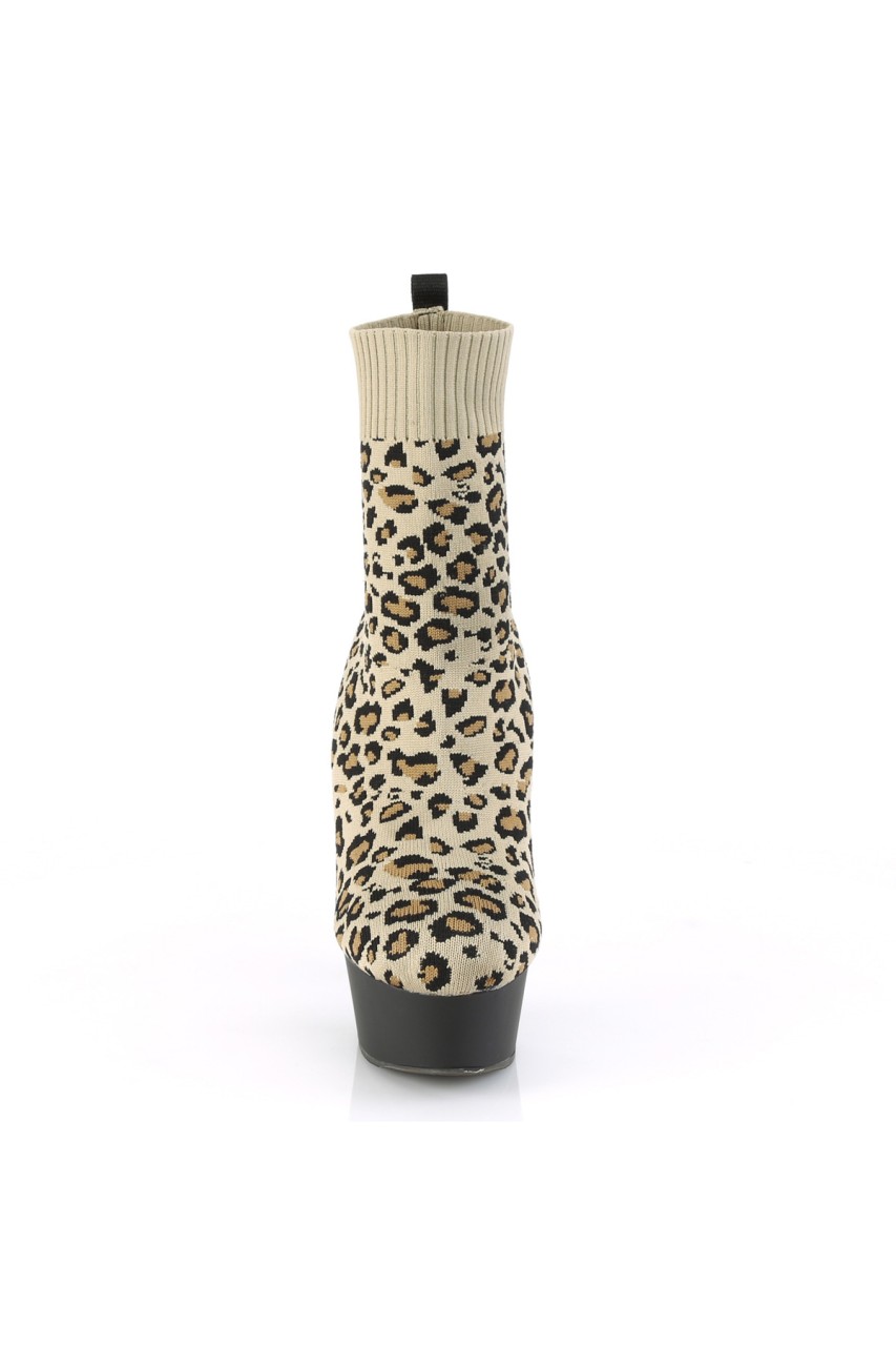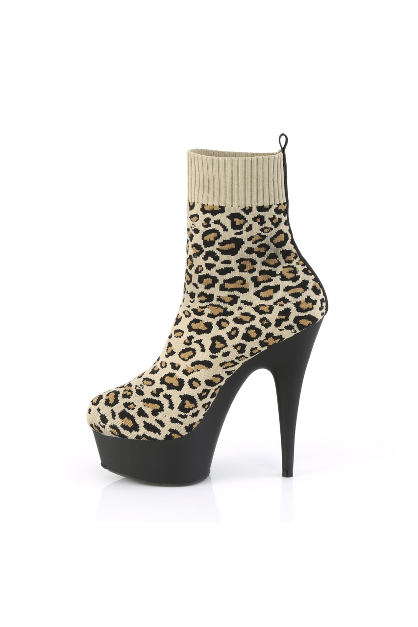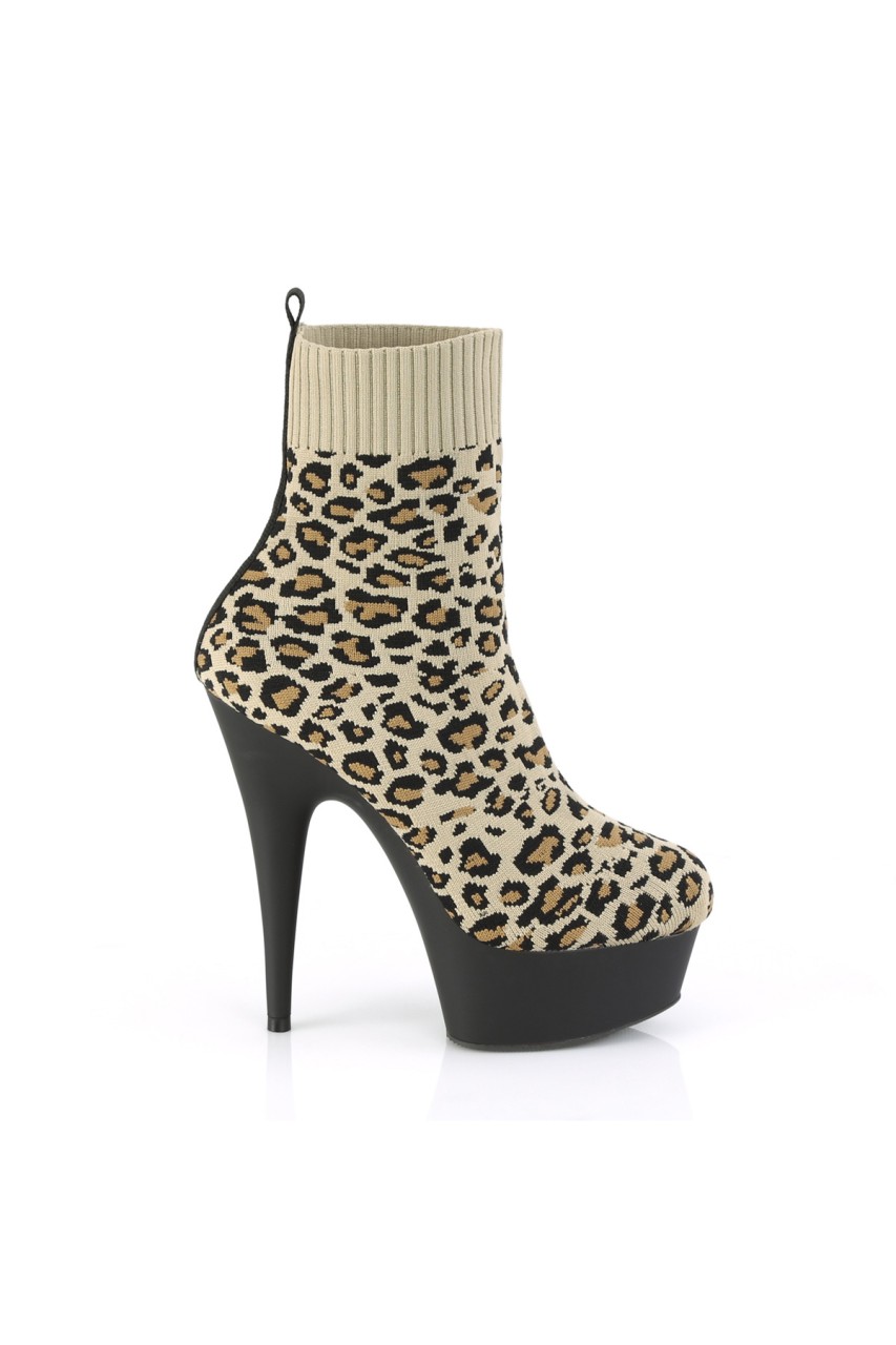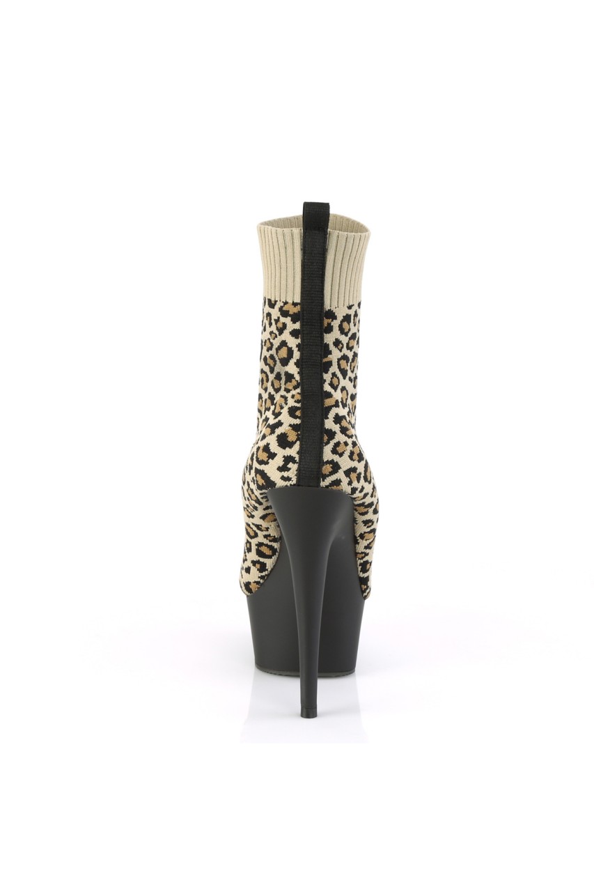 6″” (152mm) Heel, 1 3/4″” (45mm) Platform Pull-on Stretch Rib-Knit Leopard Print Bootie
